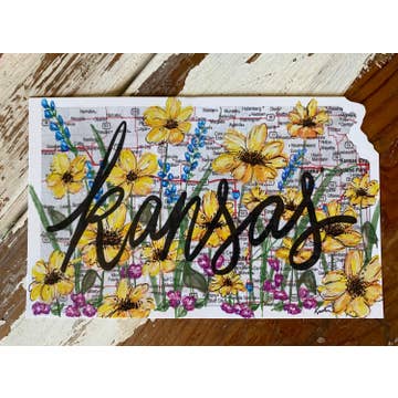 More than a basic postcard, this Kansas postcard is also die cut in the shape of Kansas. This photo was taken just south of Lawrence during a spectacular fall sunset. Share the beauty of our sunflower state as well as the Kansas motto-Ad Astra per Aspera (to the stars with difficulty) with this beautiful sunflower postcard Make a difference- a portion of all sales will be donated to Alzheimer research