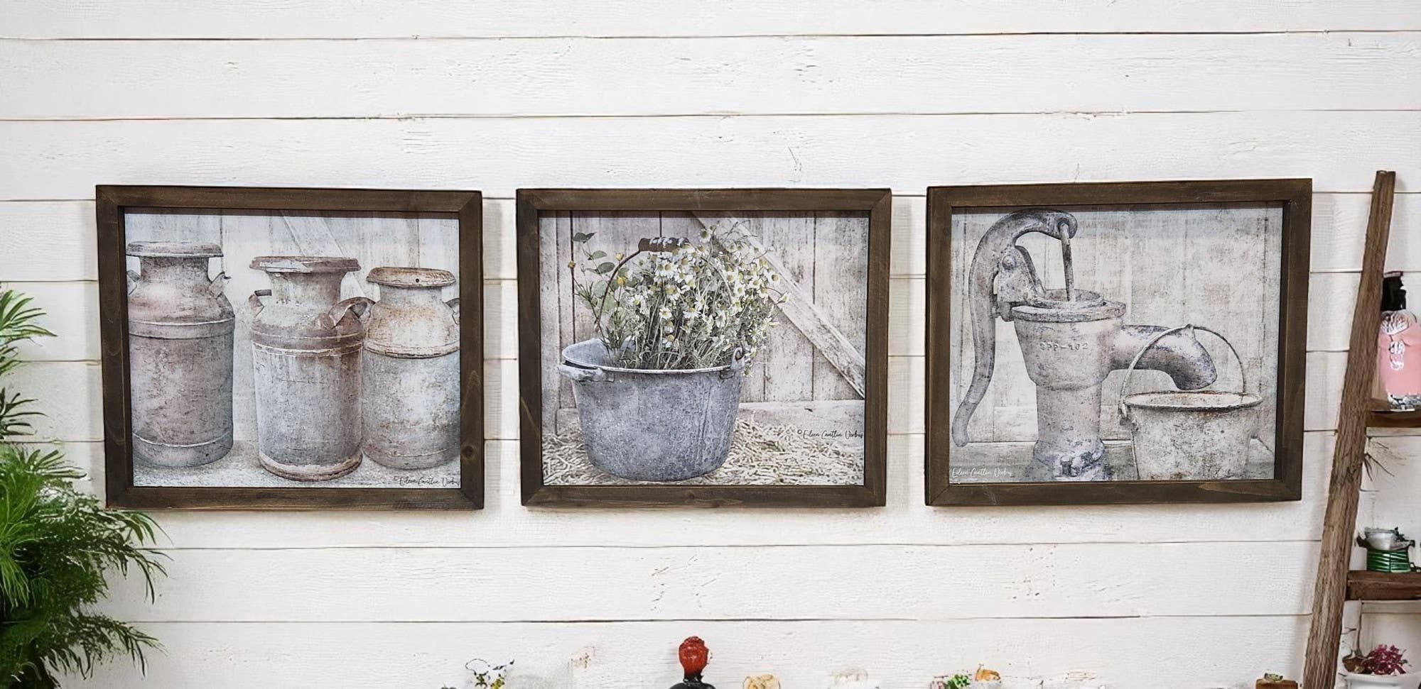 A brand new set for your warm country bathroom! Perfectly coordinated with a variety of shades: Brown, rust, aqua and red. • Orientation: Horizontal • Style: Country, Vintage, Antique, Farmhouse, Rustic • Color(s): Red, Rust, Yellow, Brown, Aqua • Suggested Rooms: Bathroom, Laundry Room, Kitchen ••••••••••••••••••••••••••••••••• PRODUCT DETAILS: Prints are unframed, printed on professional luster photo paper for rich color, and packaged with backing board in a clear glassine sleeve. Matted prints are mounted in archival 4-ply white mats with backing, ready for standard frames, and packaged similarly.