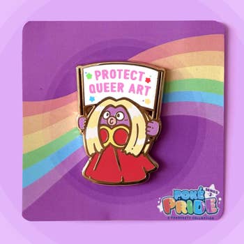 Me * Gold pin with colored enamel * Rubber backing * Measures about 1"