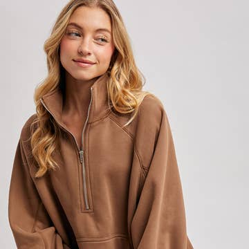 WHOLESALE COLOR BLOCK HALF ZIP UP PULLOVER