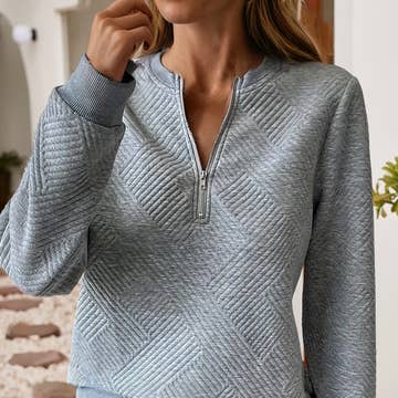 MINT ECRU COLOR BLOCK HALF ZIP UP PULLOVER for wholesale on Faire4