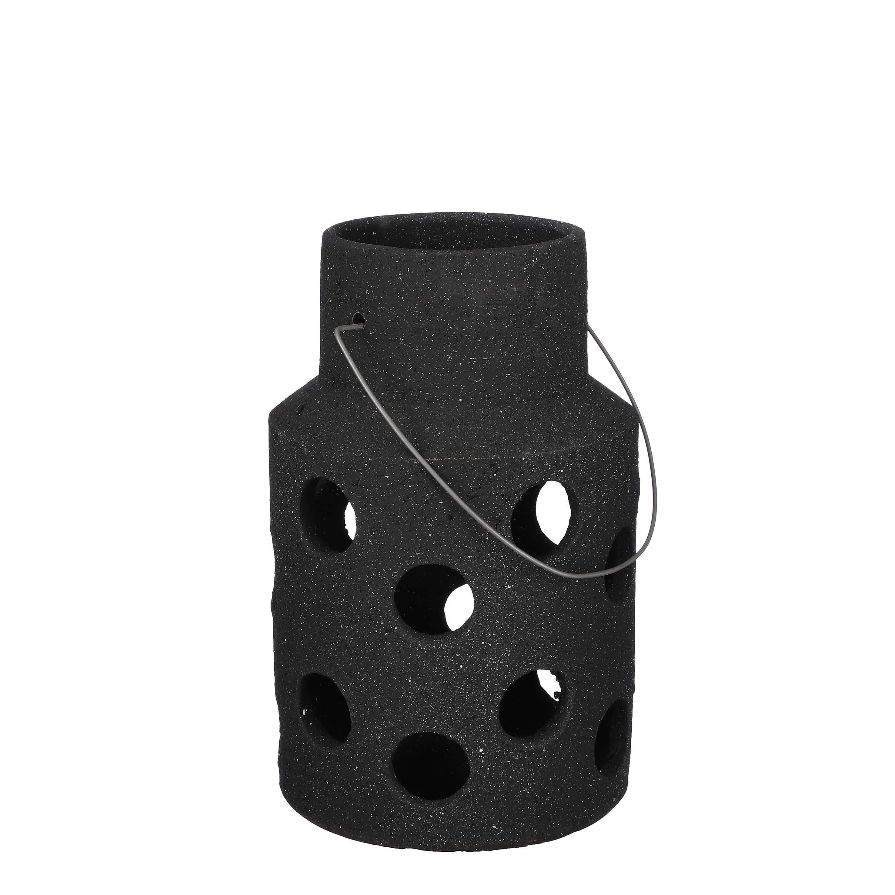 Our mini rustic punched tin lanterns are perfect for Early American or primitive decor, re-enacting or as theater or film props. They include an attached round hanger for hanging from a chain or hook, and a hinged door with latch. For decorative use only. Not for use with lit candles. - 7-1/2" tall, 2-1/2" diameter - For decorative use only. Not for use with lit candles but perfect for flameless, battery-operated tealights, votives and pillar candles. - Rustic antiqued punched tin - Early American primitive design