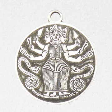 Product Code: GA03 Guarding the crossroads, Hecate is "She who encounters you", the Triple Goddess wielding the power of transformation and rebirth. Produced in pewter, enhanced with Swarovski crystals and/or gold, and provided with a chain. Approximate size: 1 1/2" x 7/8".
