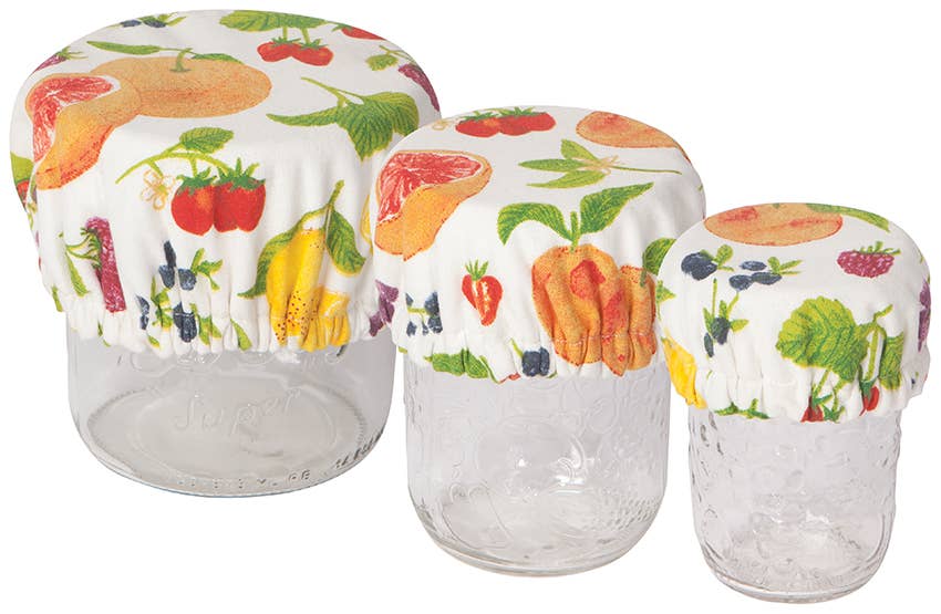 Reusable, fabric bowl covers are a simple and cute swap for single-use plastic wrap! These bowl covers are great when bringing a dish to a potluck or keeping leftovers fresh at home. They even work to keep fruit flies away from your produce! Material: 100% GOTS Certified Organic Cotton - Stemming from safer & sustainable farming practices. Non toxic water based paint. Care: Unwaxed- Machine washable cool, gentle, no bleach. Air dry. Do not iron or microwave. Waxed - wipe with damp cloth hang to dry. Alternative To: Single-use plastic saran wrap. End of Life: These bowl covers are 100% backyard compostable. Sizing: This is a Large 12.5" cover, all covers stretches and can fit a variety of bowls slightly smaller and slightly bigger than stated.