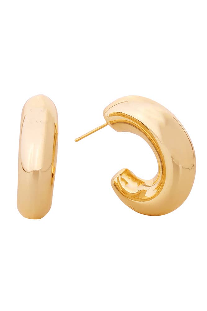 PRODUCT DETAILS * Water Resistant💧 * Brass * 24K Gold * Sterling Silver Ear Post * Handmade * Hypoallergenic * Nickel Free * SIZE: 13mm, 6mm wide DESIGNER NOTE Inspired to reflect your true worth, these delicate hammered hoops are made to shine. STYLE TIP: Pair with the Shiny Huggies and your choice of ear cuff for a dazzling ear party! * Please note this piece is manufactured and hammered by hand and might look slightly different from the picture showed.