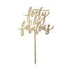 1/5" wood. Average size: 5.5" x 8.5”. Scripted by hand and crafted from laser cut wood, this stacked cake topper is ready to celebrate the big 4-0! Available in gold, silver or natural wood finish.