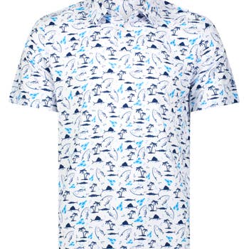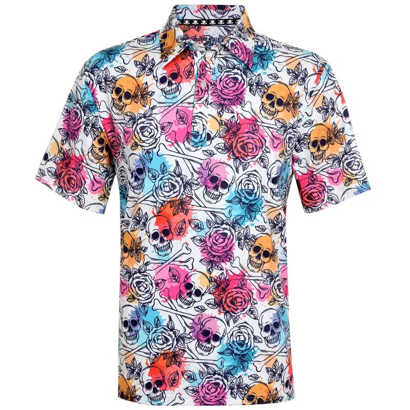 Cool-Stretch Aloha Men's Golf Shirt - Blue You can almost feel the ocean breeze as you stand upon the first tee box sporting the new Aloha men's golf shirt! The new Aloha Series - combining classic Hawaiian designs, our iconic skull crossing clubs, and our Cool-Stretch fabric technology to make this men's golf shirt a go-to winner! This technology ensures complete comfort and flexibility throughout your game. Available in black, blue, red, and tiki tan 3.8-ounce, 95/5% polyester/spandex Cool-Stretch material Self-fabric collar Tag-free label 3 Button placket Men's size Small through 4XL Need a Pair of Golf Shorts to Match? Add your favorite pair of men's golf shorts to your new golf shirt for a one-of-a-kind stand-out look. Also, grab a coordinating golf hat, cabretta leather glove, and some cool golf accessories. Lightweight, breathable ProCool fabric technology keeps you cool and comfortable all day long.