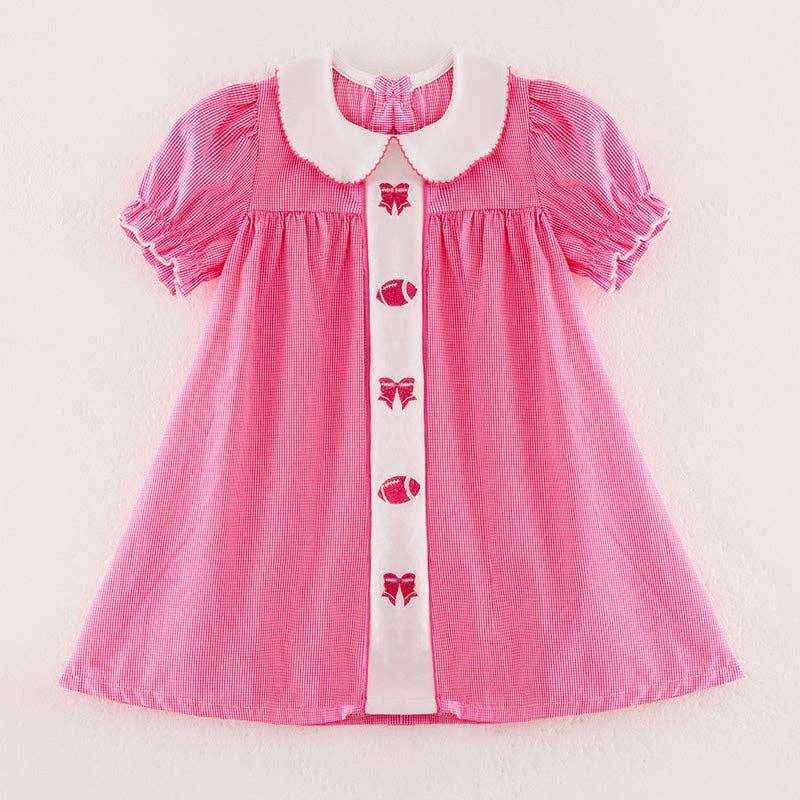 Dress your little champion in this adorable pink bubble romper, featuring a charming football bow embroidery. Soft and comfy, it’s perfect for playful days and cozy naps alike. The cute design adds a sporty touch while keeping your baby girl snug and stylish. COTTON