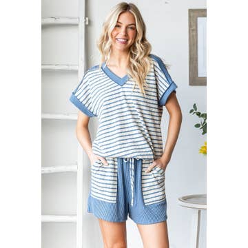 Plus Acid Wash Tired Mixed Fabric Palazzo Pants