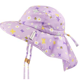 Perfect for the beach or everyday wear, this lightweight UPF 50+ sun hat is functional and cute. Made in a pretty Daisy print, the hat has an adjustable chinstrap to keep hat in place, with a breakaway clasp for safety. • 100% Cotton • Cold handwash, Lay flat to dry • Made in China