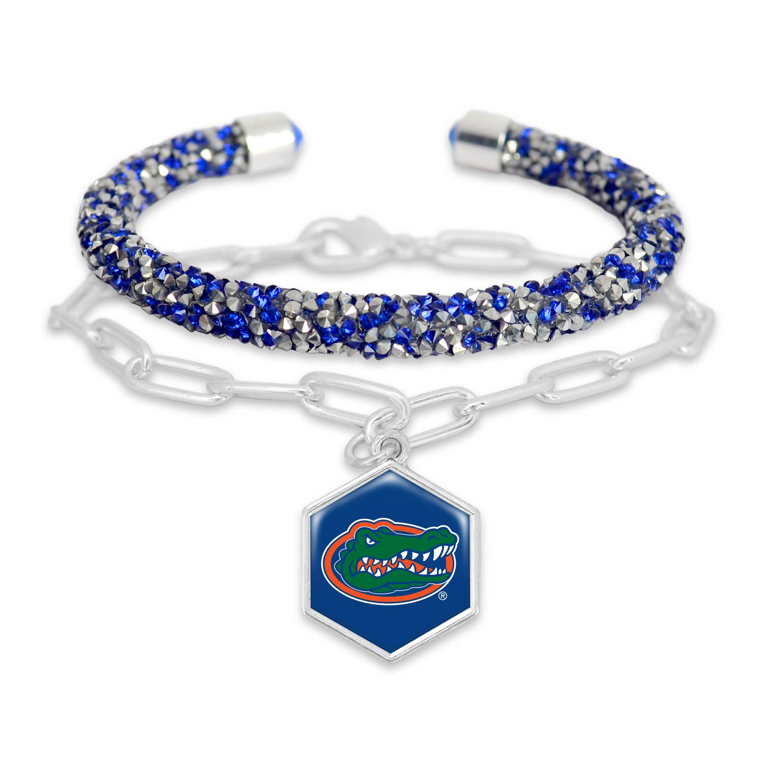 This Two-Tone Bangle Bracelet is adorned with a primary team logo charm and boasts an eye-catching appearance with the two-tone beads and textured popcorn accents. It has a comfortable fit without compromising style or fashion. Combine other bangles and bracelets on one wrist for a fashionable and sleek look.
