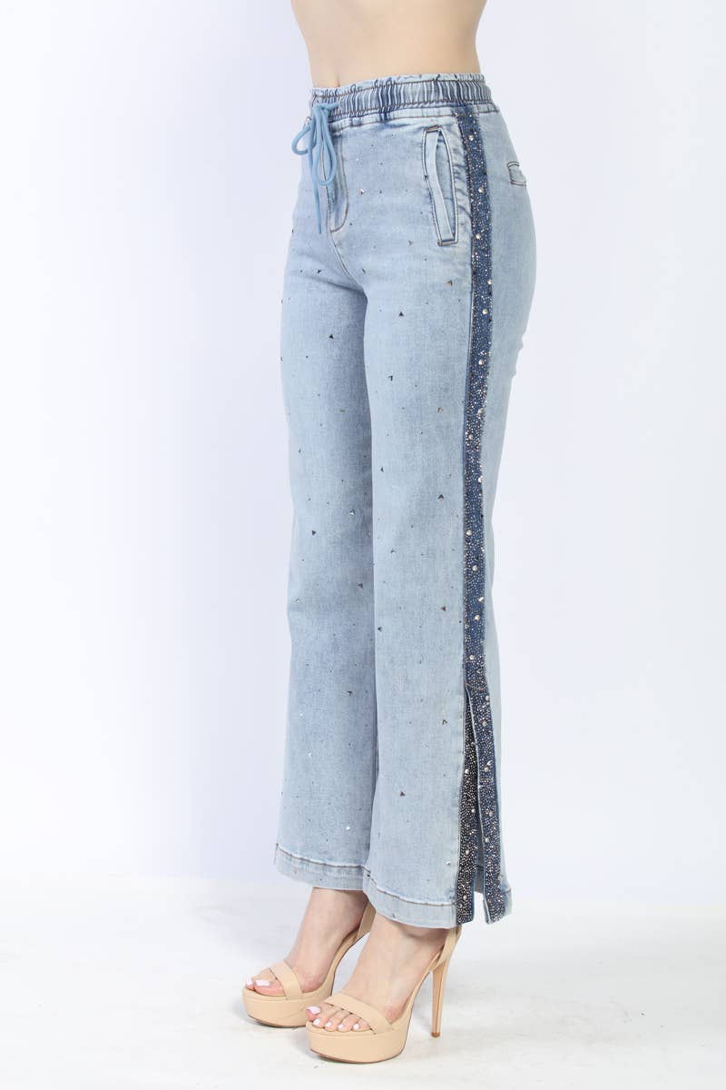 SKU: 22300P-DENIM-S, 22300P-DENIM-M, 22300P-DENIM-L Made in China Aesthetic: Casual Fabric: 88%COTTON 10%VISCOSE 2%SPANDEX Fit: Contemporary Occasion: Everyday Season: Fall/Winter