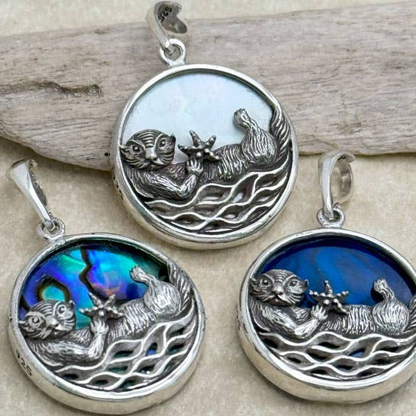 Sterling Silver & Dolphin Pendant Large in Purple Abalone and Shiny Black Lava. Pendant (Large) is 30mm Round, 40mm w/ Bail. All original designs are from my copyrighted artwork and stamped with gds copyright logo and 925 Tag Words: Sea Life, Ocean, Shell, Abalone, Paua Shell, Nautical, Coastal, Island, Florida, Hawaii, Sterling Silver Necklace, Sterling Silver Pendant, Sterling Silver Jewelry