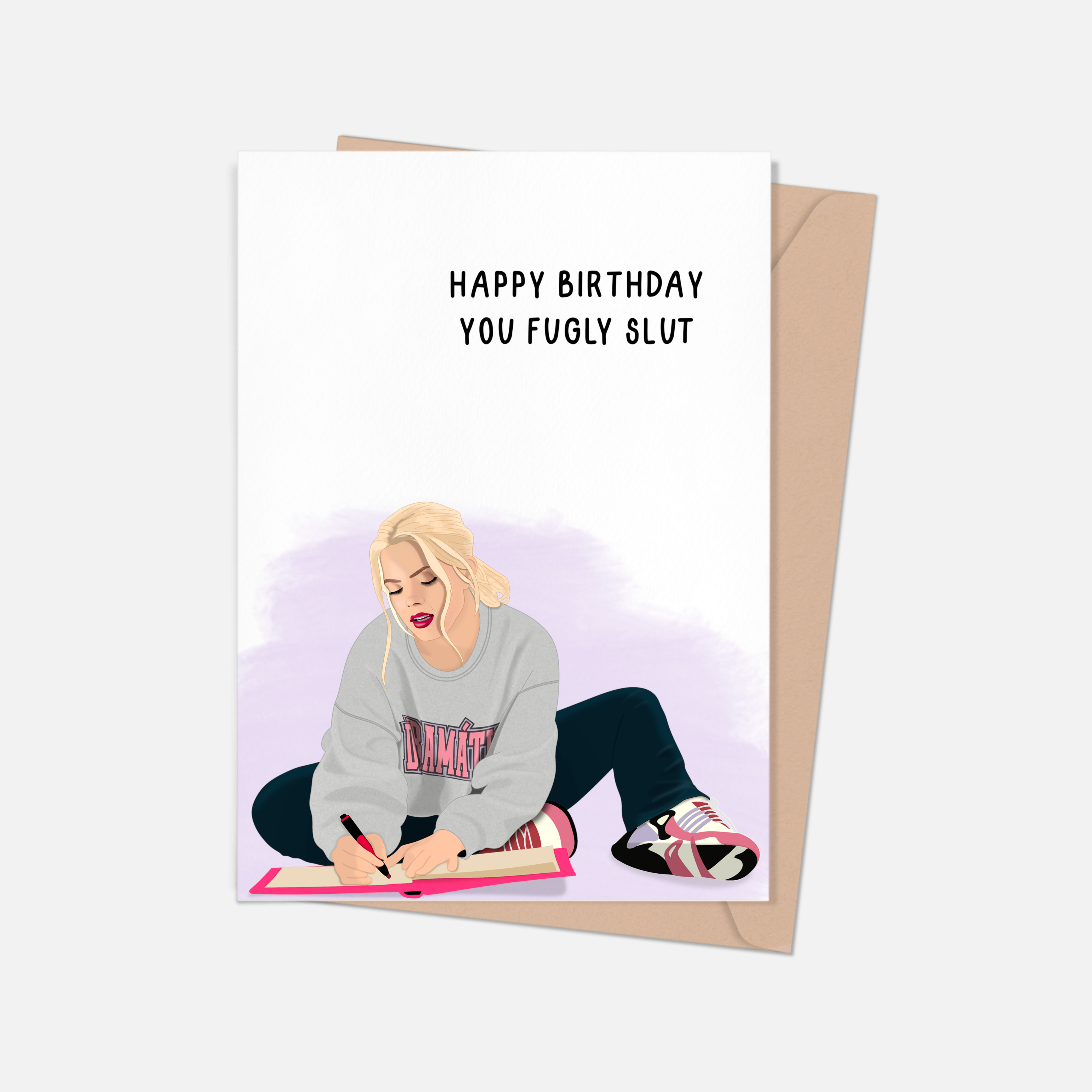 SKU: GCARD200 Made in United States Color: Multi-Colored and White Finish: Matte and Textured Is Set: Individual Theme: Pop Culture Tone: Funny Weight: 11.34 g (0.4 oz) Dimensions: 14 x 10.8 cm (5.5 x 4.3 in)