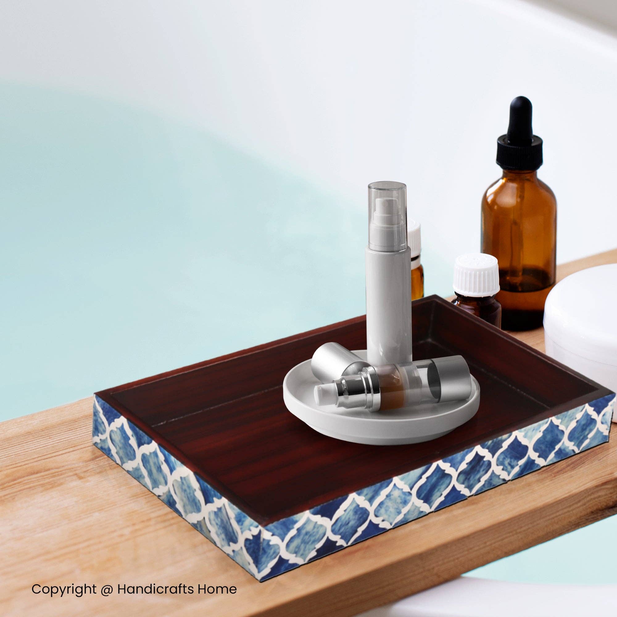 blue Decorative Trays Riviera Elance Pattern Wood & Resin Inlay Collection in 12x8 for wholesale on Faire1