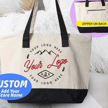 Wholesale CUSTOM Small Business Tote Bag with Zipper and Side Pockets
