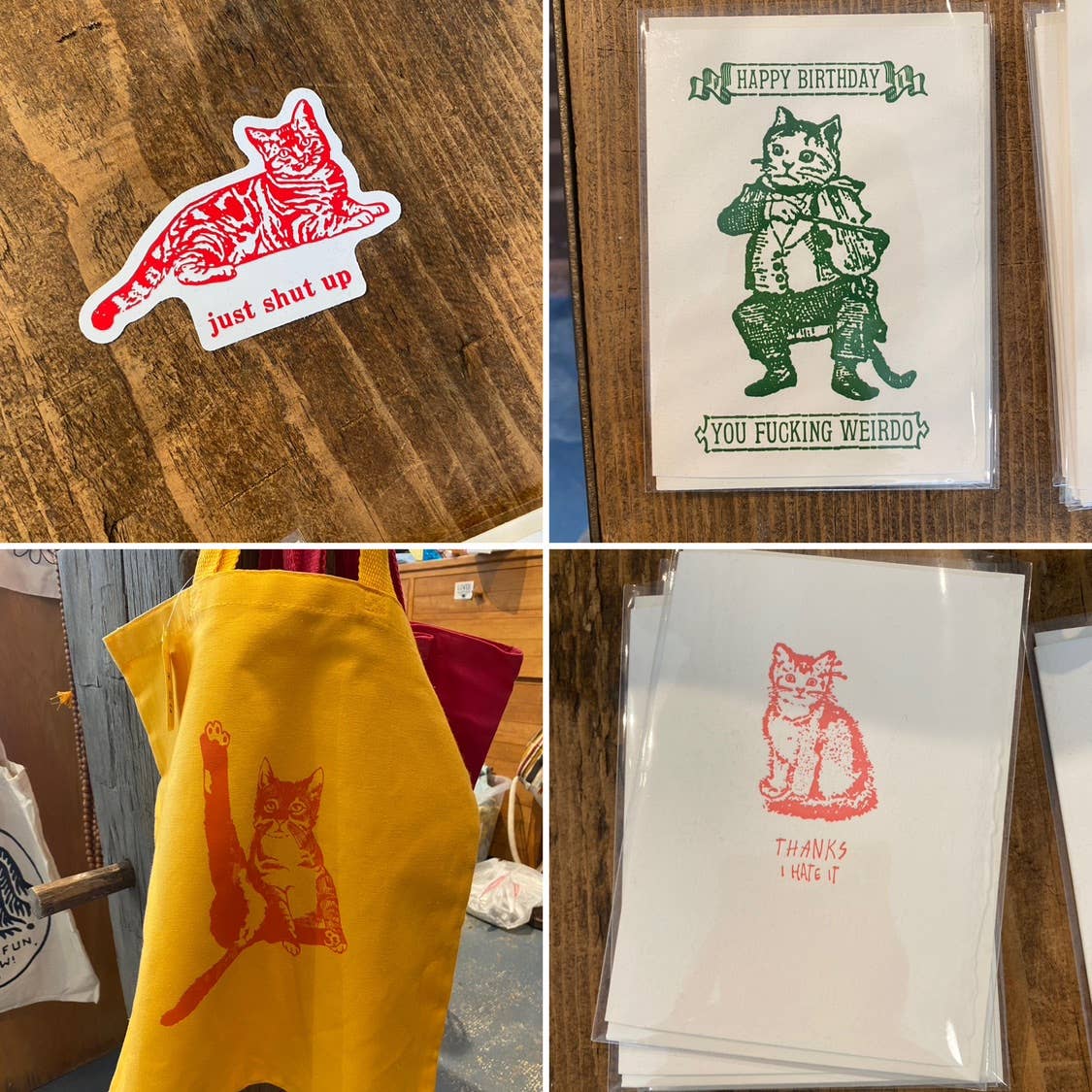 Hilarious products. Great quality cards. These are the perfect addition to our shop.