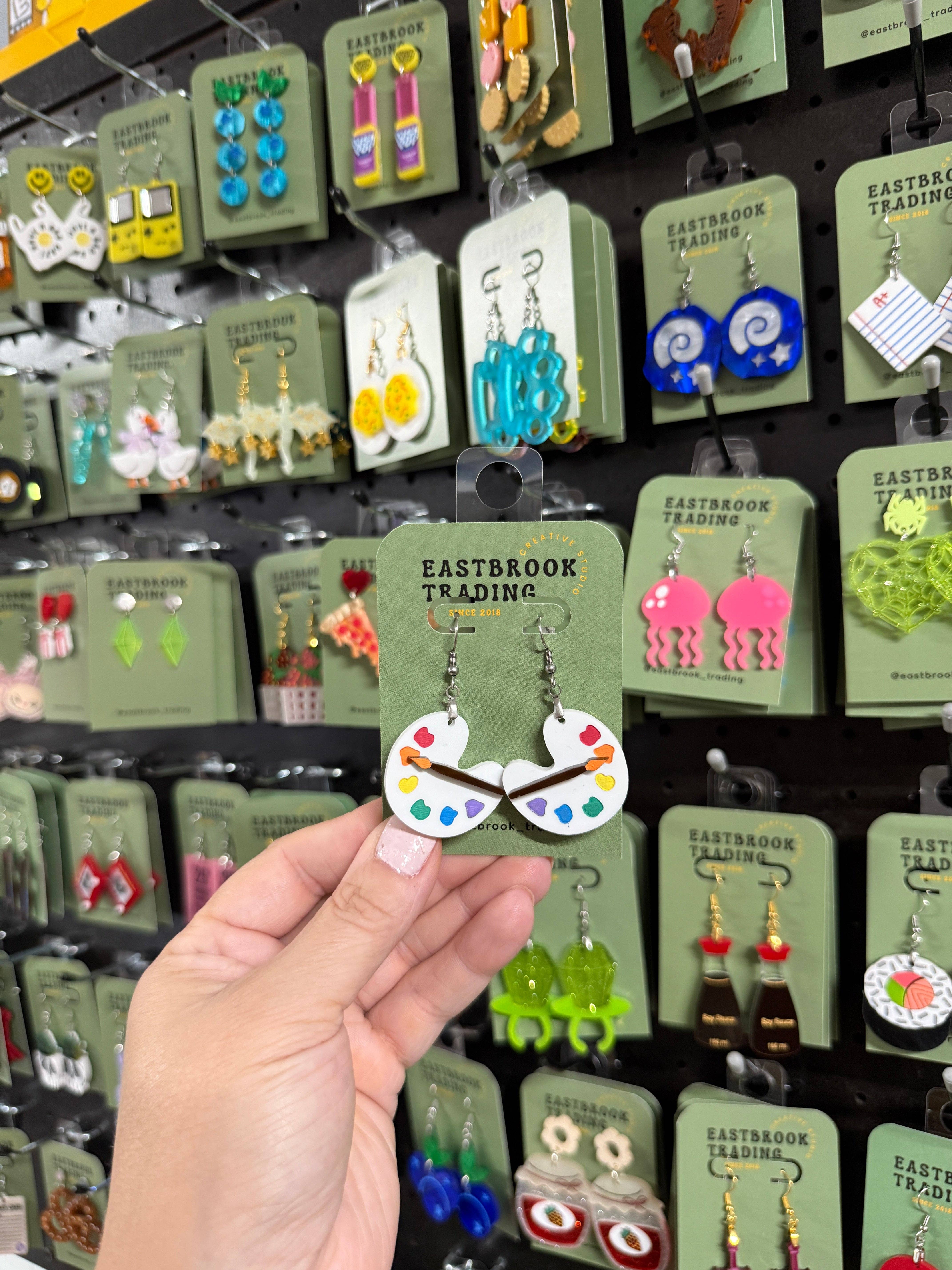 Perfect for Halloween parties, horror lovers, or anyone who appreciates a little dark humor with their accessories. 👻 Product Details: • Design: Hotel-style guest check with red handwritten-style text • Material: Laser-cut acrylic with painted details • Hooks: Hypoallergenic, nickel-free stainless steel • Size: Approx. 2" drop • Lightweight, funny, and bold • Sold as a pair 💀 Why You’ll Love Them: ✓ Hilariously spooky with a dash of sass ✓ Great for haunted house enthusiasts or Halloween fiends ✓ A perfect mix of creepy and cute ✓ Handmade with ghostly giggles in mind 📦 Shipping & Processing: Made to order! Please allow 15–20 business days for creation before shipping.