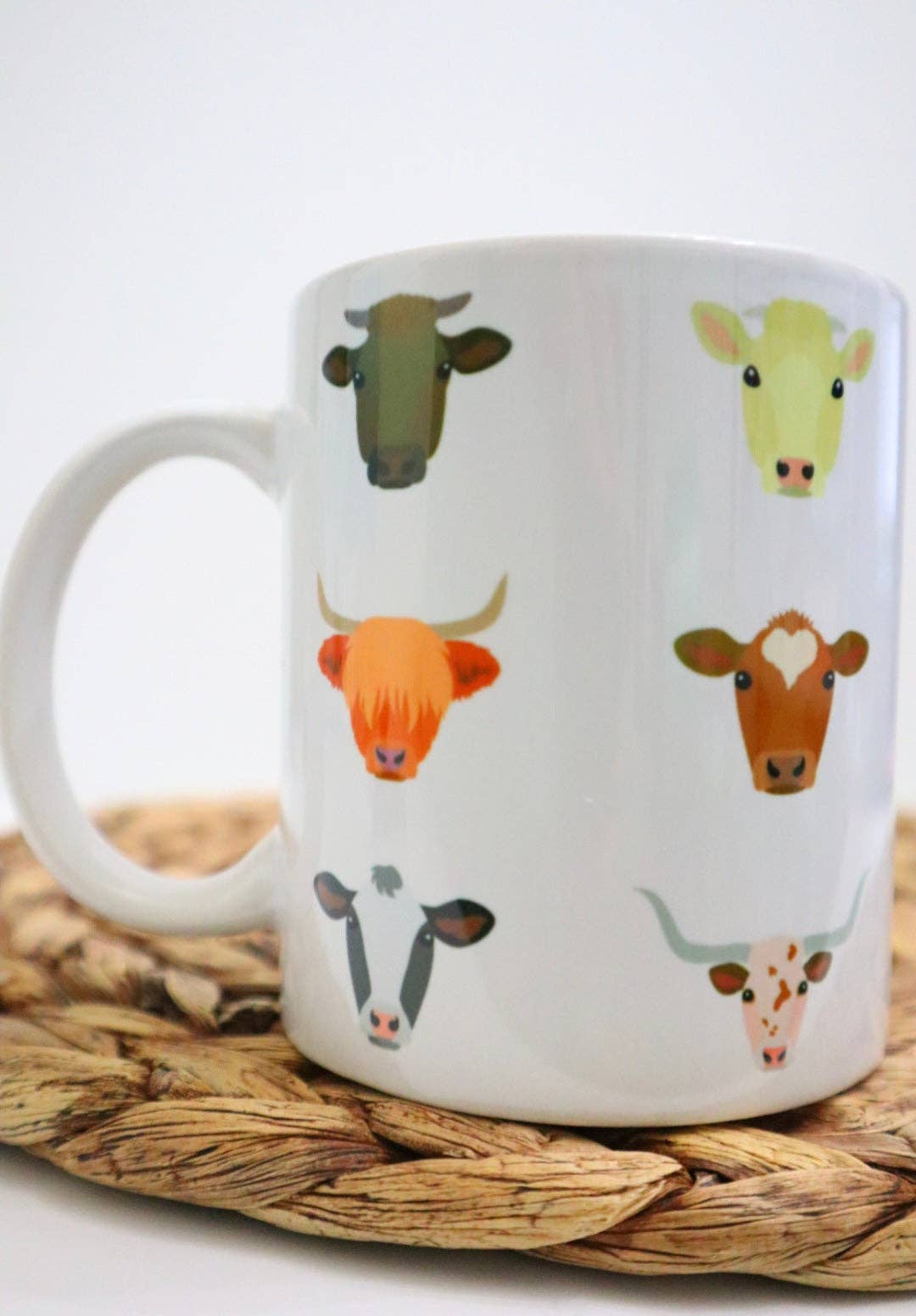 Beautiful farm animal stack coffee mug made from my original painting featuring a highland cow, sheep, pig and chicken. The image is on both sides of the mug. This mug holds 13oz of liquid, and is a nice sturdy ceramic camp mug. These mugs are made by hand in my studio using the sublimation process so the image is permanent on the mug and are dishwasher and microwave safe! Option to choose a white mug with the black rim, or a cream speckled mug with the black rim- as shown in photos. Please note for mug orders larger than 20 pieces, I may have to order more mug blanks which will extend production time.