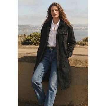 CT003 Denim Long Jacket Winter Detachable Collar Coat