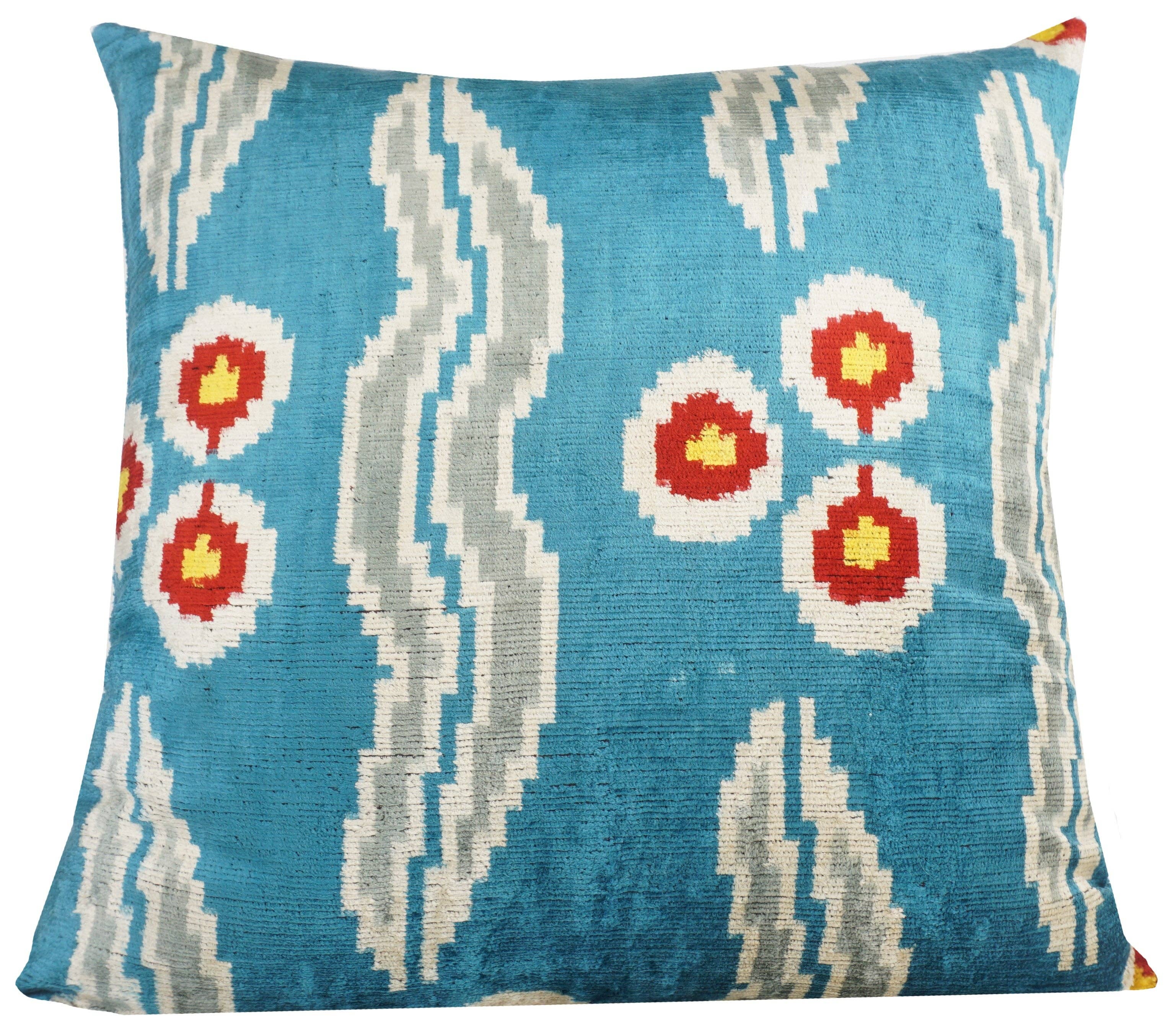 HANDMADE IKAT SILK/VELVET PILLOWCASE 24"x24"