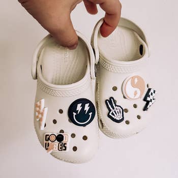 Mix your kicks with shooshoos Poppits. Just pop 'em on! Now you can have custom kicks with our fun range of shoe charms. Choose your kids initials or mix and match to create your personalised look. Charm dimensions: +/- (25mm x 25mm) (1in x 1in) Charm comes with back button. Insert the button at an angle into the side holes on your waterproof sneakers. Be sure to select your placement before inserting, as the charms are designed with a snug fit in order to prevent kids from removing them. Warning: Chocking hazard. Small parts not for children under 3 years. Parental guidance is advised.