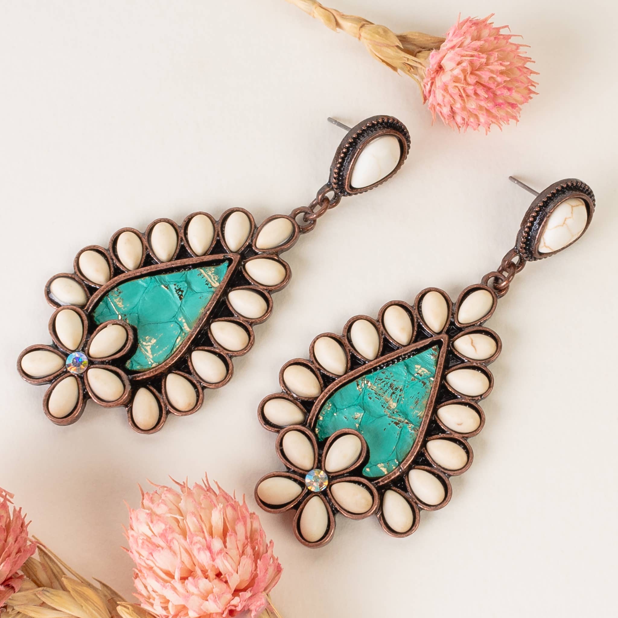 Giddy up on style with our Western Leather Cutout Earrings with Turquoise Stone. These aren't just accessories; they're a frontier of fashion and artistry. Composed of 70% leather and 30% zinc alloy, these earrings offer the rugged charm of the West with a contemporary twist. The cutout designs are intricate, but it's the turquoise stone that steals the show, adding a pop of color that's as bold as it is beautiful. Readied for wholesale and set for immediate shipping in packs of 6, these earrings are a retailer's jackpot. Saddle up these showstoppers in your collection and let your customers ride high on trendsetting style. 70% Leather 30% Zinc Alloy Wholesale Immediate Shipping Packs of 6
