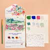 This mini watercolor paint by number of a field of rose flowers landscape is a DIY kit perfect for all artists new and experienced. The design is lightly outlined on the mini canvas and contains a 6x9 instructional card to help you paint your mini masterpiece! You have the option of gently pulling off the bottom of the card, with the paint on it, along the perforated line if you want to gift the finished painting with the letter or you can keep everything intact and gently pull the mini canvas from the card. For all skill levels. Packaged in beautiful box specially made for this kit! The kit contains: Folded Letter with 4 color palette White Envelope 3.5x5” mini canvas with outlined design Watercolor Brush Instructional paint by number sheet with visual of final painting to reference