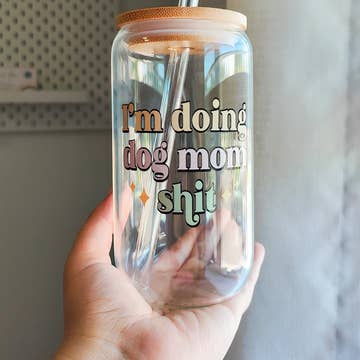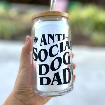 Trendy 16 oz glass can made with high quality permanent vinyl! Anti Social Dog Mom Hot & cold drinks. Hand wash only. Care instructions included with each cup! Listing is for one glass.