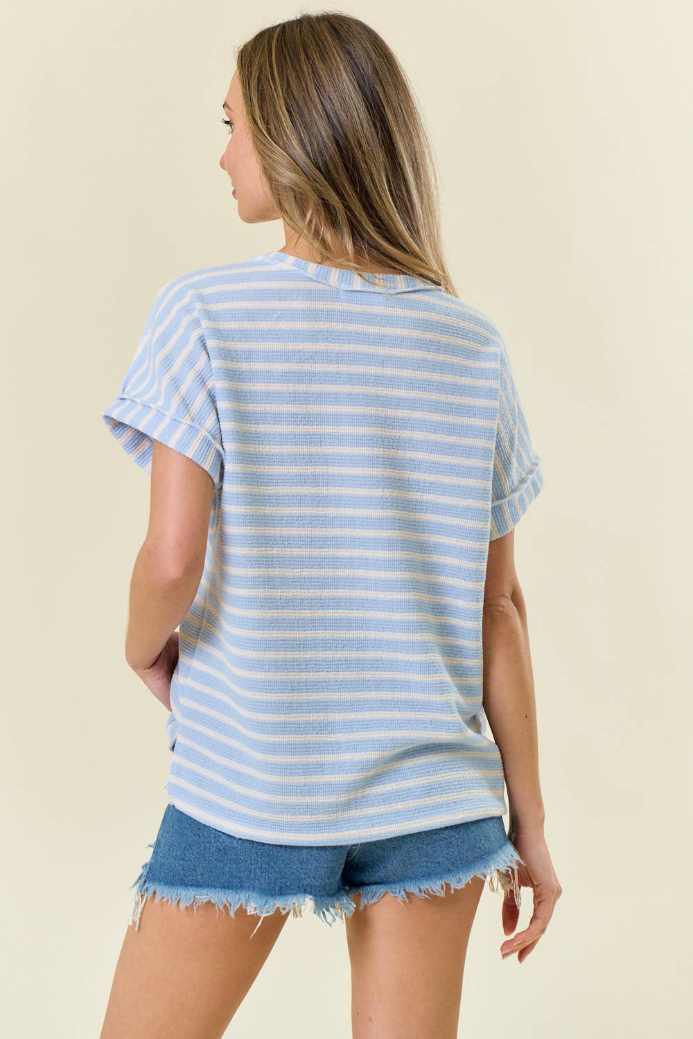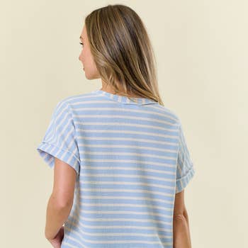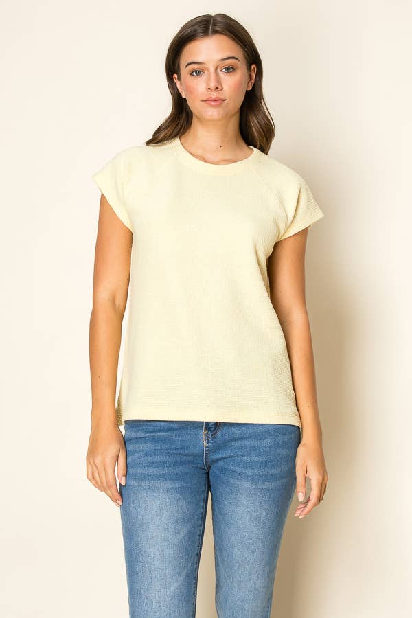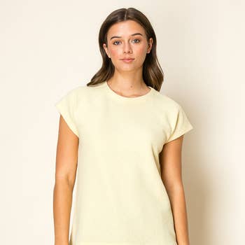 - Style No.: T9989 An oversized cotton slub short sleeve top with a cropped length and eye-catching open back details. Soft and airy, it delivers a breezy, effortlessly chic look for any occasion. Features: - Breathable and lightweight cotton slub fabric - Relaxed fit / Oversized - Cropped length - Wide round neckline - Short sleeve tee - Dropped armhole - Open back - Raw edge details Model is 5'8" and wearing size Small. Fabric: 100% Cotton C.O.O: Import