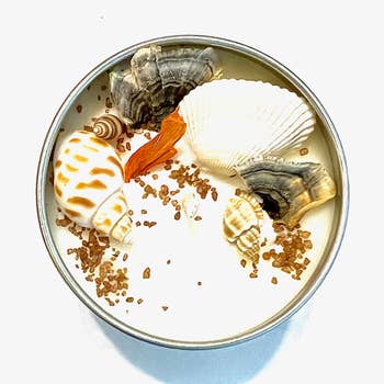 Made in United States Benefit: Mood Enhancing Burn Time: 35 hours Color: Blue and Multi-Colored Fragrance Family: Aquatic Handmade: Yes Occasion: Birthday and Mother's Day Scent: Aquatic and Earthy & Woody Season: Summer and Year-Round Size: 6 oz Style: Coastal Theme: Beach & Coastal and Gothic Wax Type: Soy Product Language: English Ingredients: Contains: Soy Wax/Vegan. Fragrance Oil (Saltwater, Driftwood) Seashells, beachglass Charged Moonstone 6 oz 35 hour burn time Weight: 170.1 g (6 oz) Product Materials: Plastic-free and Vegan Packaging: Plastic-free and Recyclable