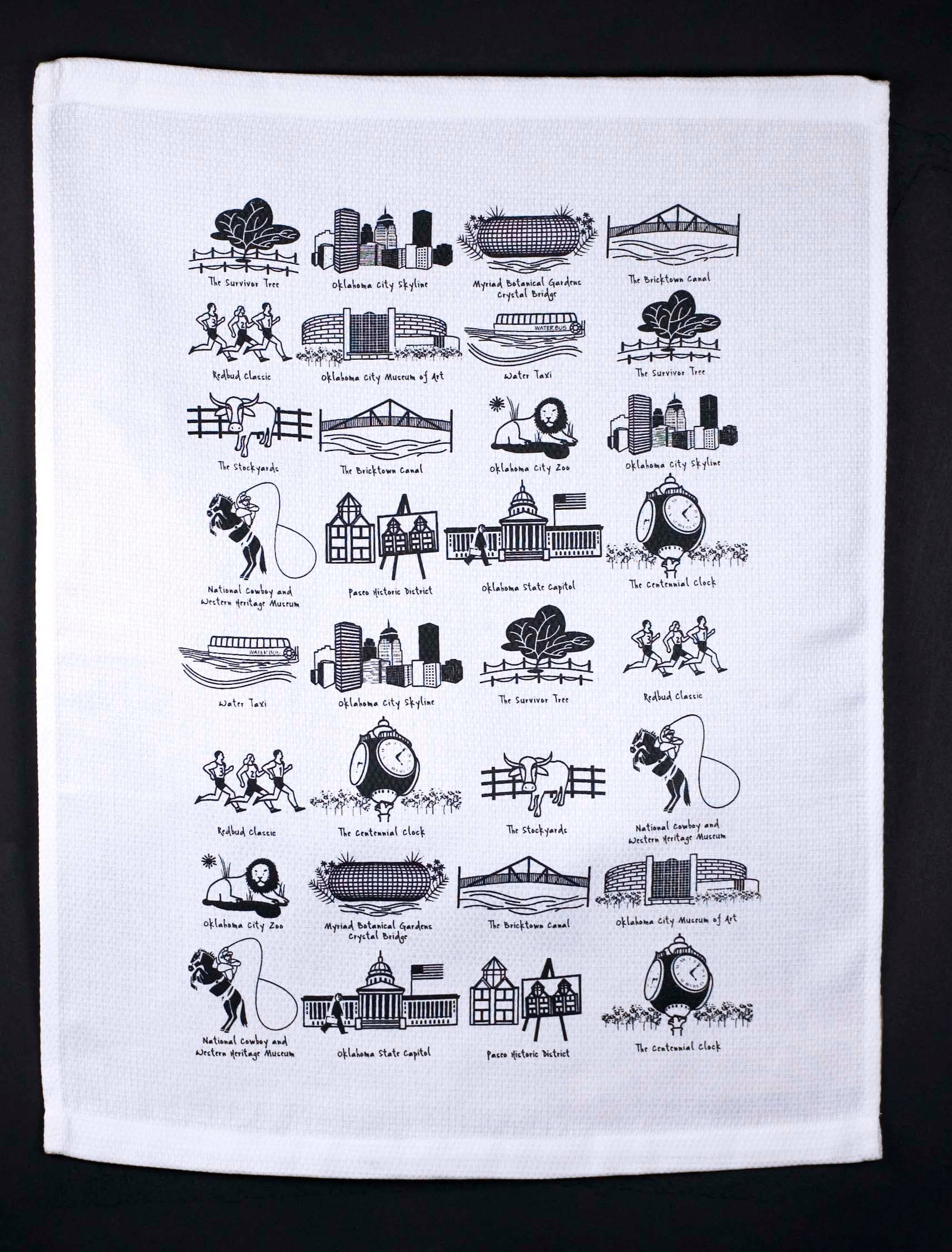 Order Details * REORDER MINIMUM: Order total must reach $260.00. Mix and match products and designs. * RETAIL PRICE: $26 Geography Dish Towels * HOW THEY'RE MADE: Each dish towel is made of hand-loomed cotton and the design is printed using the labor-intensive, HAND-swipe silk-screen process with 12 colors (that's 12 screens for each towel!). The design is then framed with a HAND-embroidered border. Our towels are finished with three cheery woven stripes down the sides and hand-dyed rick-rack at the top and bottom, adding a charming vintage touch. * WHAT MAKES THEM EXTRAORDINARY: Each towel is delightfully presented in a fab organdy reusable pouch - perfect for gifting! * SELLING TIPS + TRICKS: Carry all 50 states and at least 10 hot spots. Customers love to find their hometown, collect the places they've been, or give the gift of a loved one's favorite place. Stock a variety and watch your sales grow! Check out our dish towel spinner to learn how you can create a highly profitable investment in just 1 square foot of your store. Also be sure to check out our dish towel suitcase display - complimentary with your opening order! Product Details * 20" x 29" * Packaged in organdy pouch * 100% cotton * Machine wash cold and line dry * Designed in Petaluma, California | Made in India