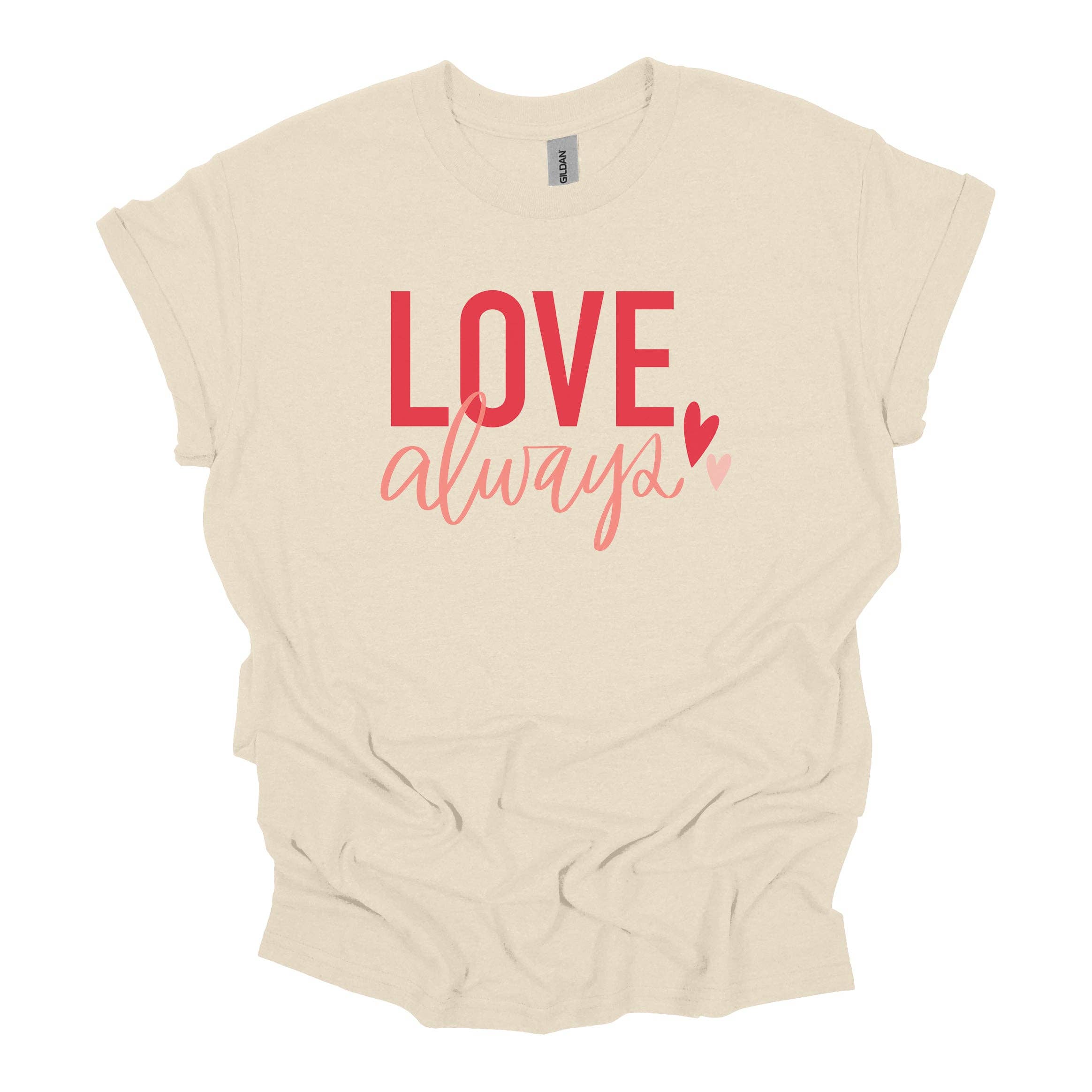 Love you, mean it! A Vintage red short sleeve unisex tee screen-printed with white water based ink for a soft vintage feel. We love to pair this with jeans and a cardigan. 100% combed ring-spun cotton fine jersey. Sizes for adults, youth, toddler, and infants. Designed, printed, and packaged by our hardworking team in Mississippi.