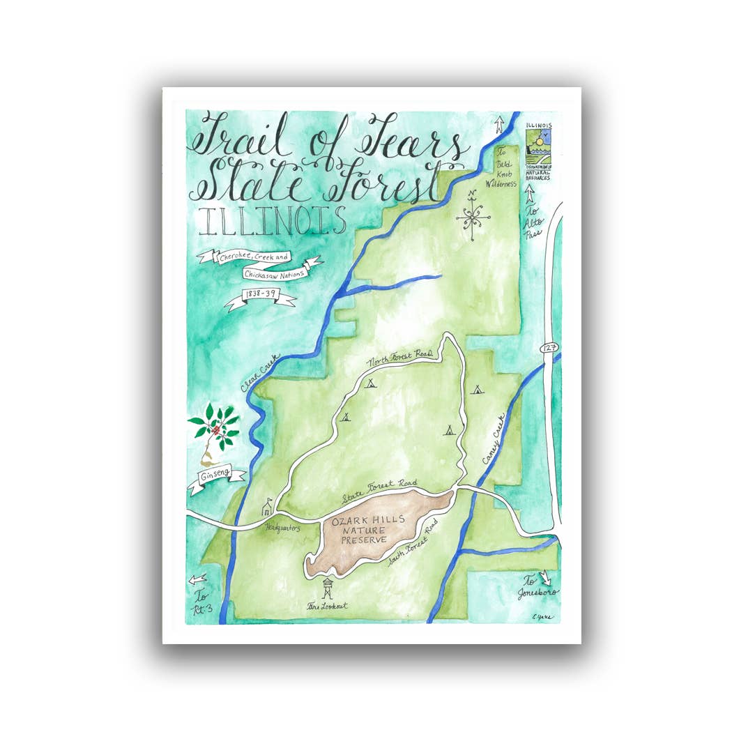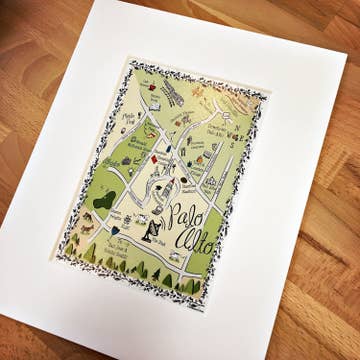 Prints of the Original Watercolor + Calligraphy Map on heavy fine art paper. Each print arrives with sturdy backing board in cello sleeve. 4 size options (inches): - 5 x 7 matted to 8 x 10 - 8 x 10 - 8 x 10 matted to 11 x 14 - 11 x 14 ** If interested in larger sizes, please reach out - I'm happy to do custom orders. Check out Postcards, Stickers and Greeting Cards of this map in the Shop too! All Artwork by Emily Yates