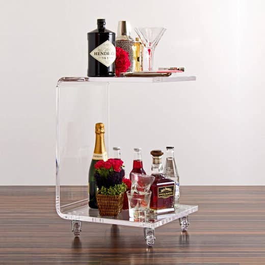 These TV tray tables are so popular we can hardly keep them in stock. Made from 1/4" thick table top and 1" thick legs, these are sturdy and should last you for years of enjoyment. The stand is sturdy and made from a combination of 3/4" and 1/2" material so it is very sturdy also. Our TV tray table is all clear with 1" thick legs and a 20" x 16" top made from 1/4" thick acrylic. This table stands at 26" tall when set up. Our stand has a very small footprint at 12"w x 16"d x 30"h.