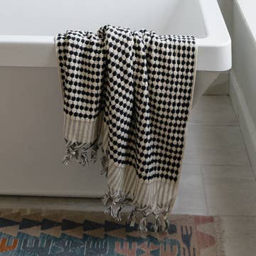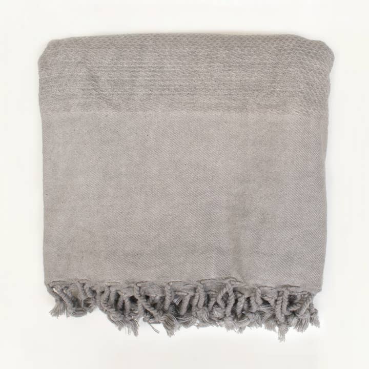 Grayful is a handwoven Turkish towel made from 100% cotton on traditional black looms, a technique passed down through centuries in Turkey. Its light gray and blue jacquard design features classic diamond patterns and is thicker than most towels, yet dries quickly. Compact and durable, Grayful offers both practicality and a touch of heritage, making it a functional addition to any bathroom and a great gift choice.