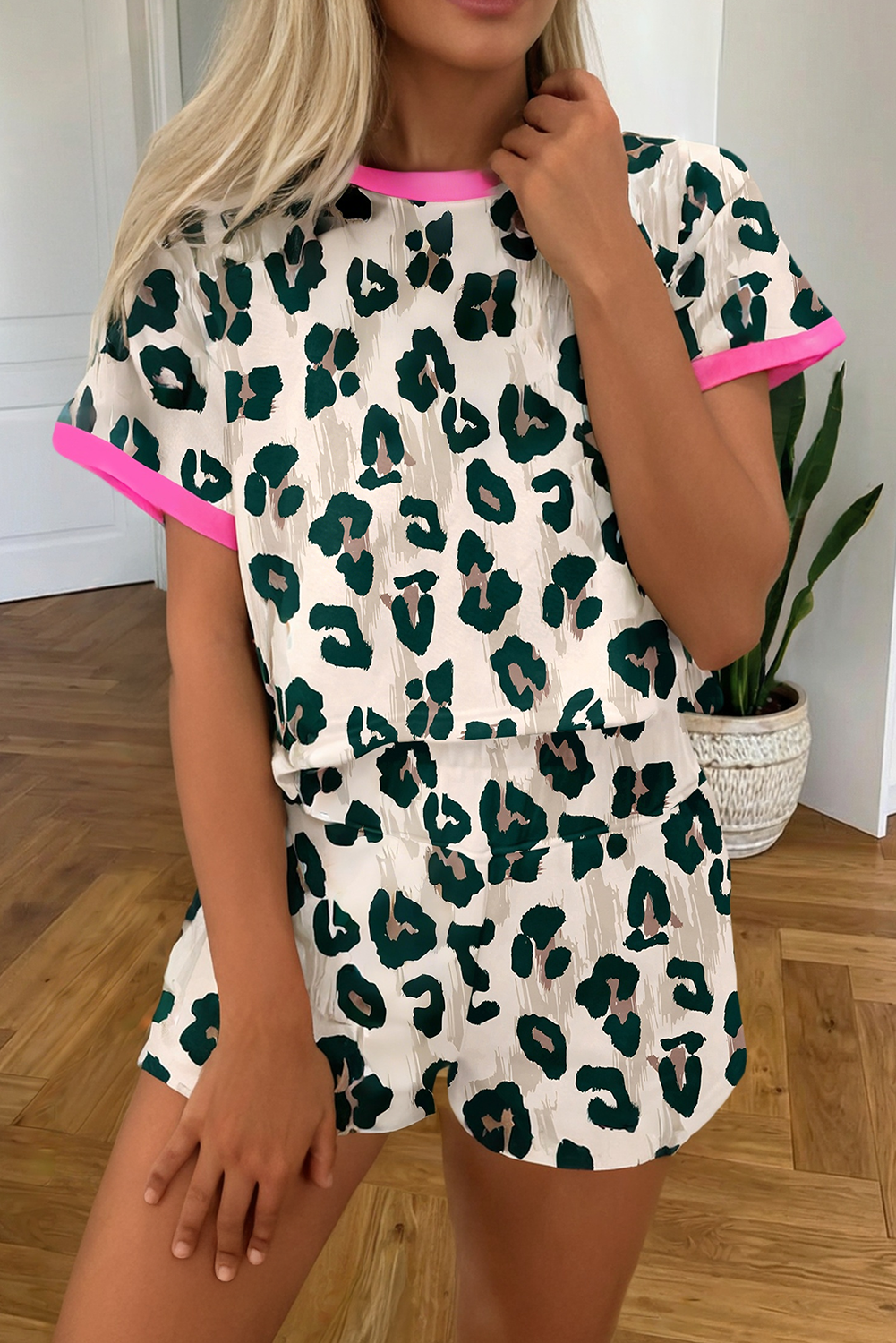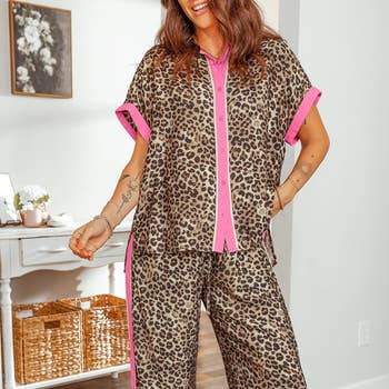 Red Printed Button Up Shirt And Shorts 2pcs Set ZK1039