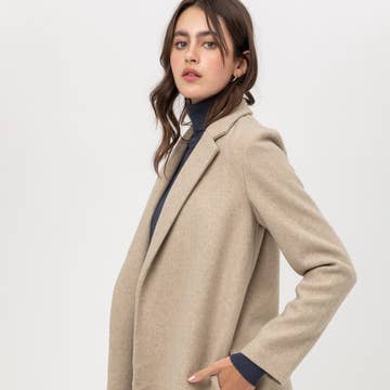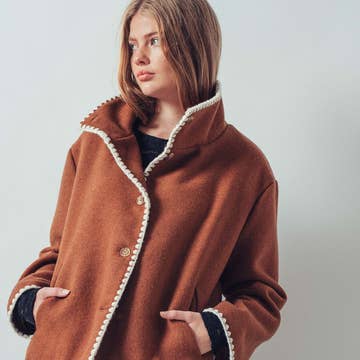 Details: * Different colors are spliced and collide with each other, more modern * Short version with lapel design * White stripe color collision at the sleeve * Patchwork front piece Materials & Care: * Fabric 1: wool 91.5% cashmere 8.5% Fabric 2: Lambswool 100% * Non-washable, gentle dry cleaning * Do not bleach Size & Fit: * Model is 5'7", Bust 32, Waist 24, Hips 35, wearing a size S Item #: LM3CT01