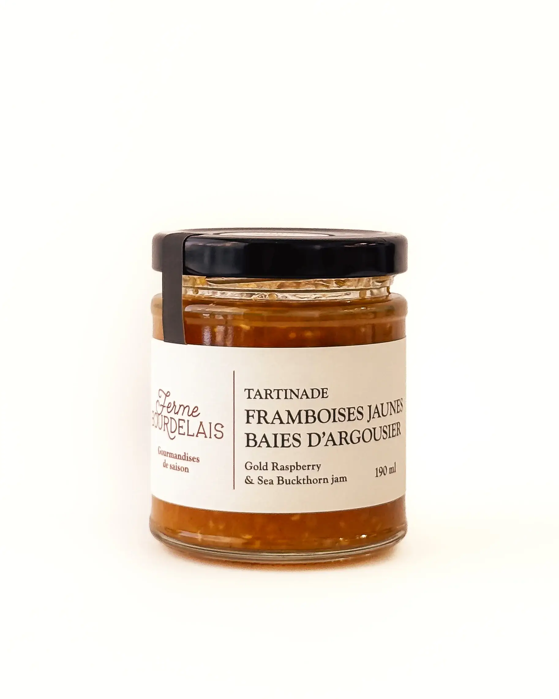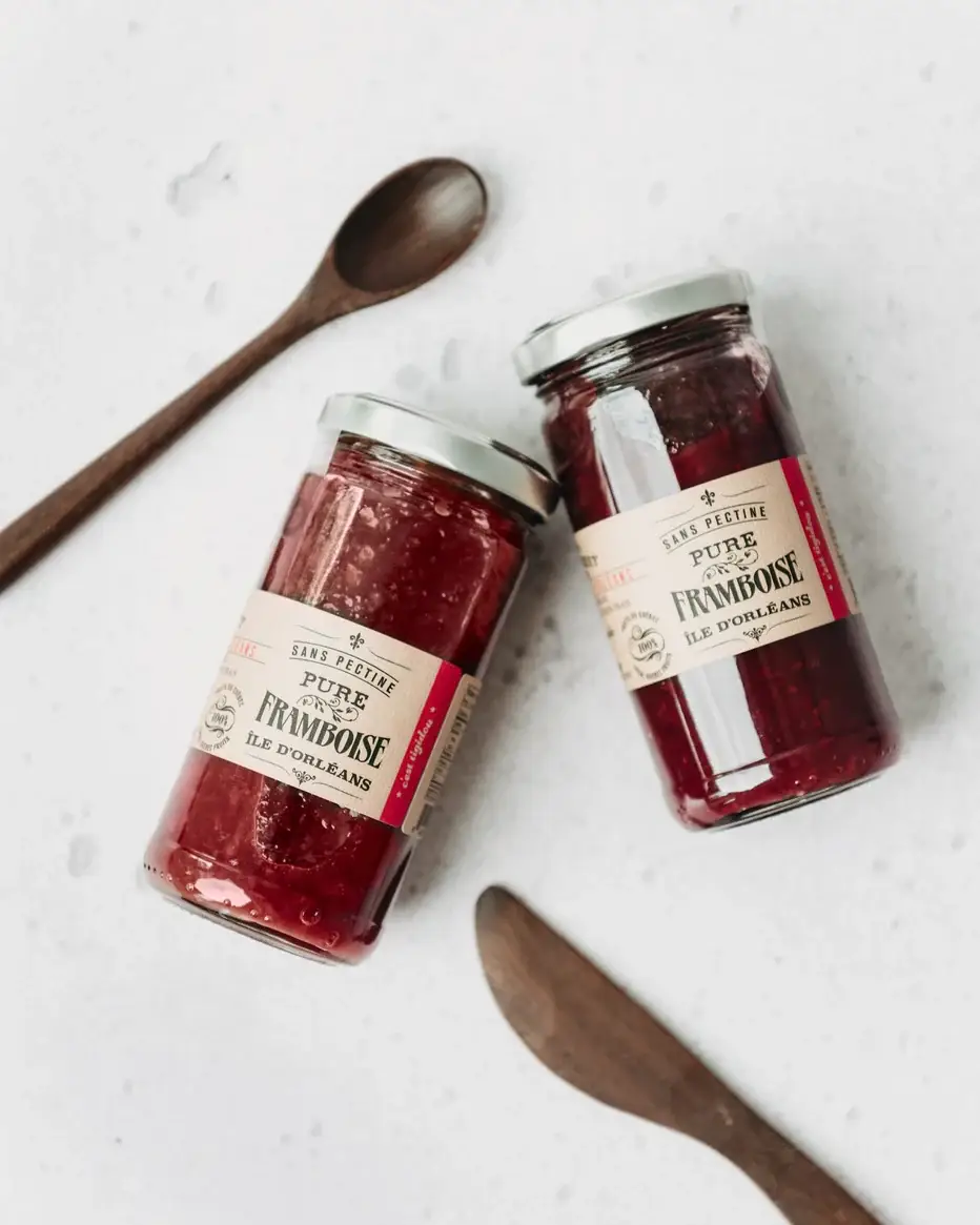 Made in Lavaltrie (Lanaudière). Completely charmed by this reinvented classic, a handmade raspberry and rhubarb spread developed by Ferme Bourdelais. The best seasonal treat! Here, you'll find the bold flavor of raspberry, with a delightful finish of rhubarb's tangy acidity. Don't be surprised if it quickly becomes your new favorite jam for breakfast. Size › 190 ml