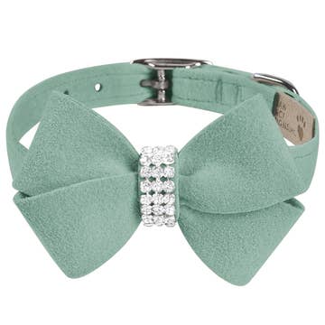 Our Dark Olive Green Satin Bow Tie dog collar is perfect for the ringbearer dog in the wedding party! This collar is part of our wedding collection. A Dark Olive Green satin bow tie is attached to the Dark Olive Green satin collar. The bow tie is removable with two hook and loop fastener strips. The bow tie has an interfacing center to retain its shape.