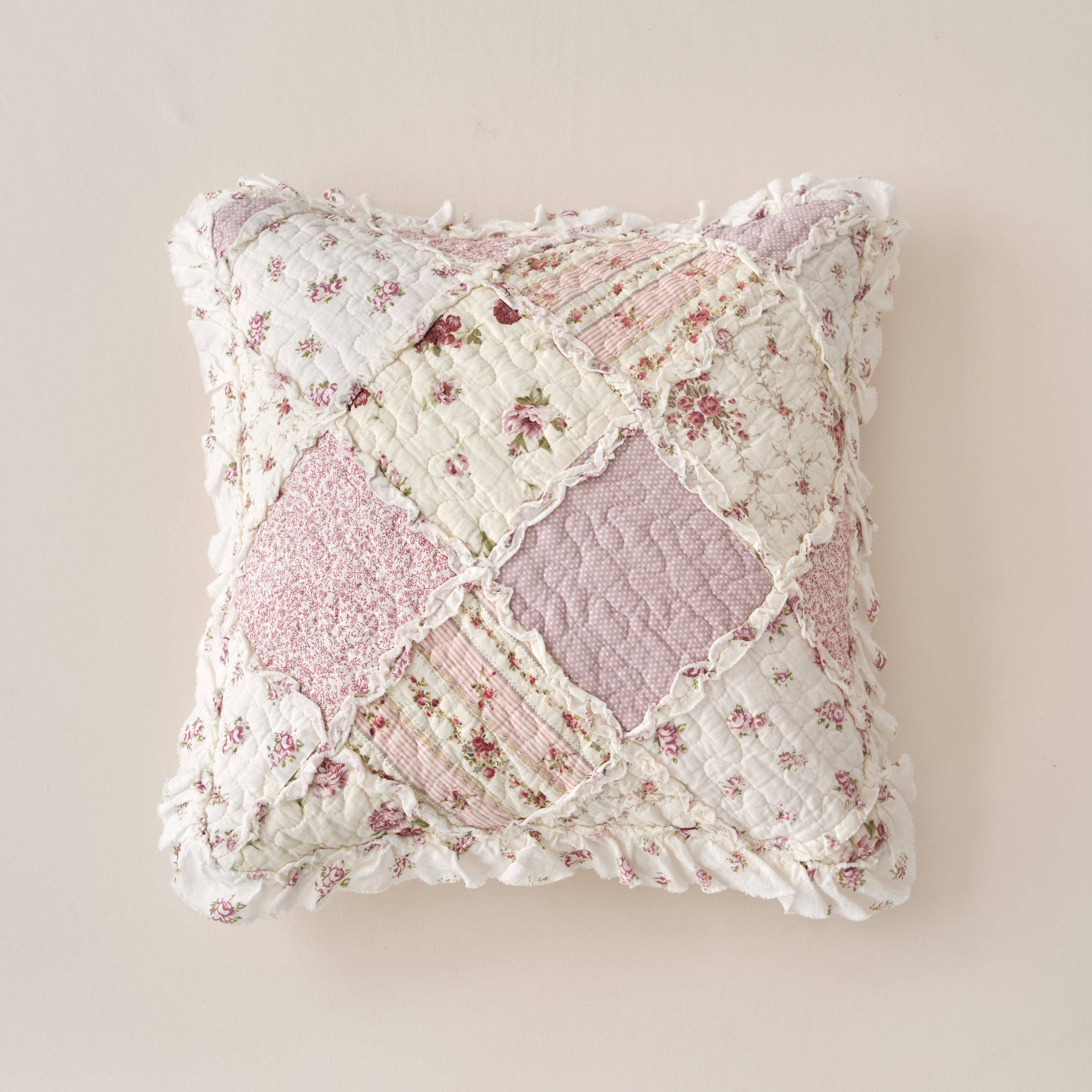Wholesale DaDalogy Cotton Patchwork Throw Blanket - Floral Cottage Quilted Reversible Blush Pink & Cream Shabby Chic Botanical Ruffle Design - Vintage Garden Rose Pastel Accents (3031)- 50 x 60