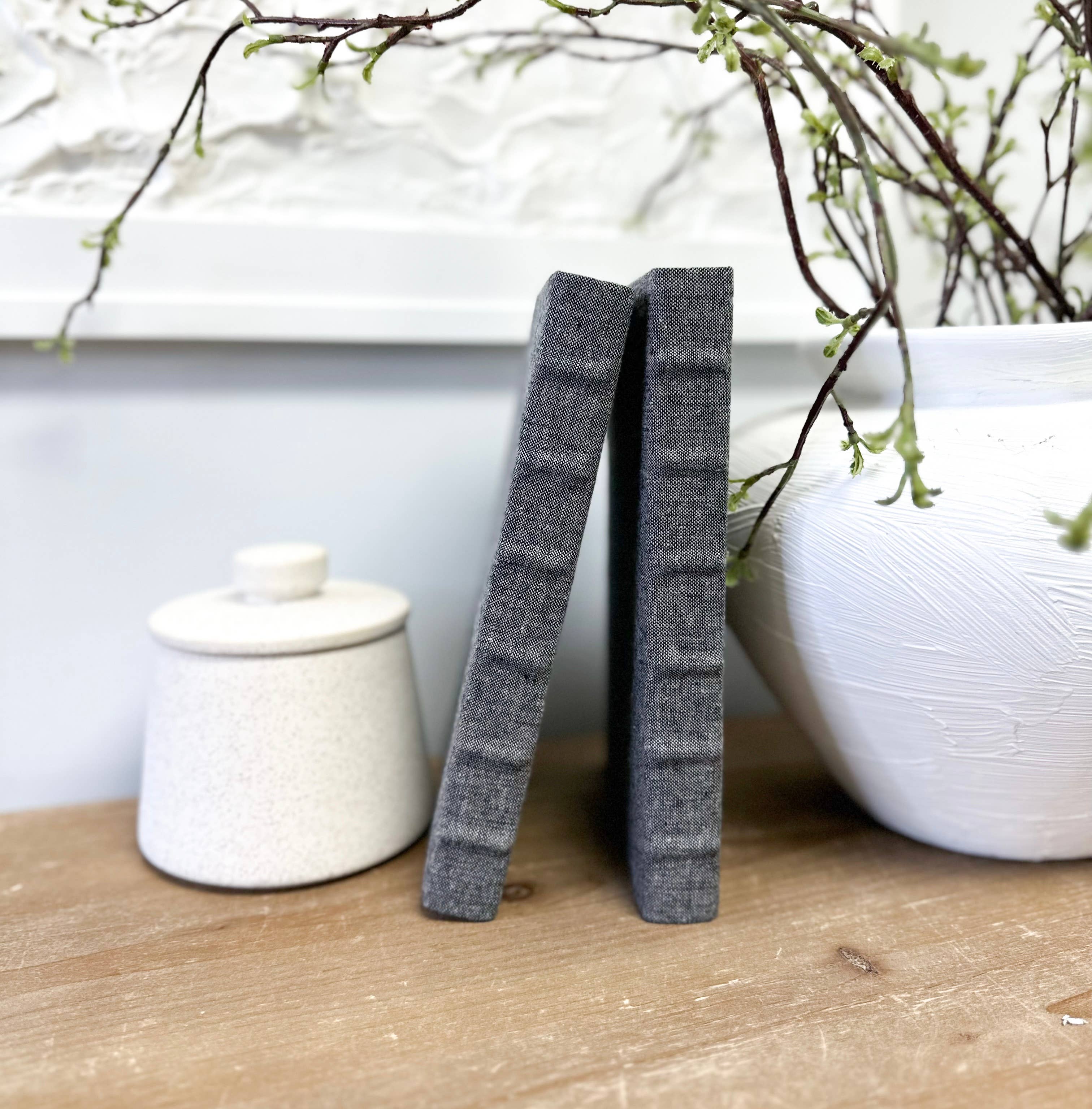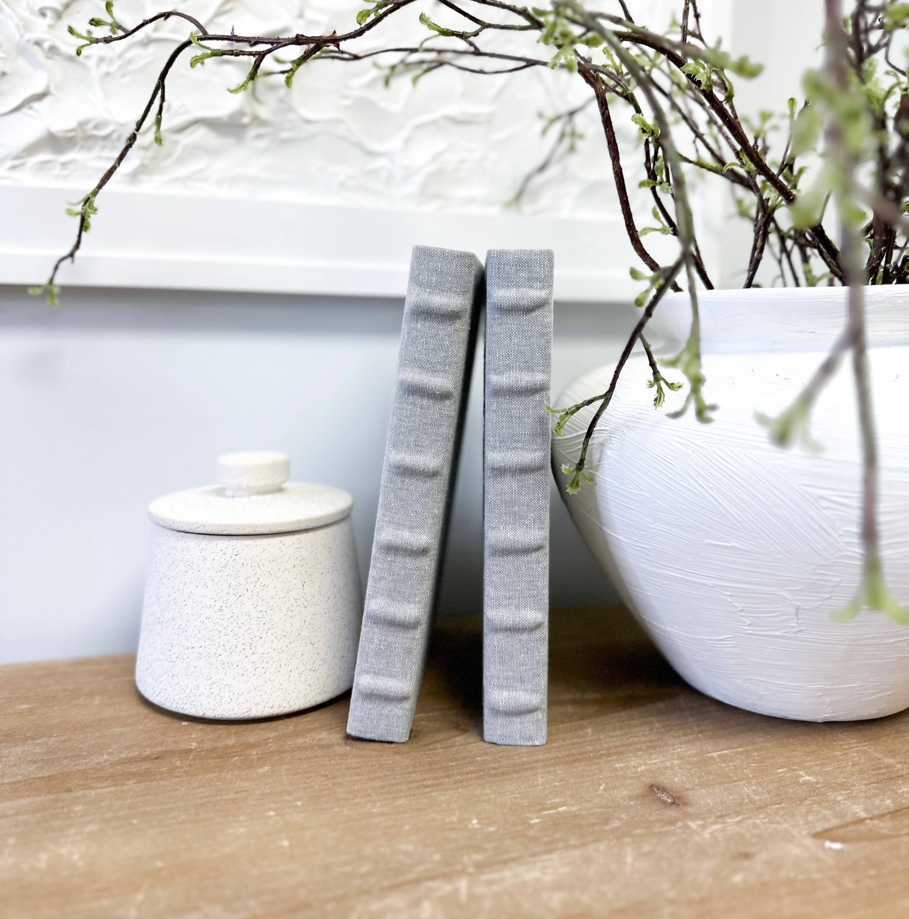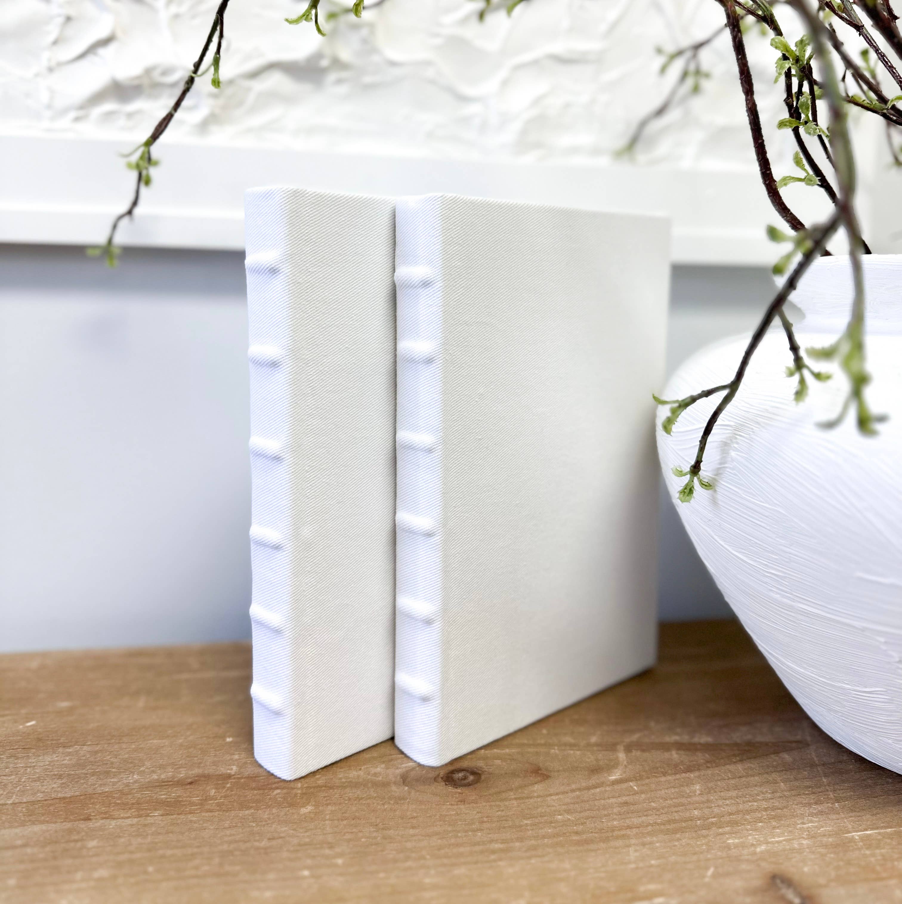 Elegant linen wrapped books for shelf decor and decorating your home are the perfect room accessory. You can use book bundles to add texture, height, and color to your coffee table, accent tables, built-ins, and shelf decor. Price is for ONE flax/cream book with embellished spine. Build your book set by choosing the fabric style and quantity. Repeat this process to build your set. Check out multiple listings with different colors and patterns too. You will receive books of various sizes and heights. Typical books range from 8.5-9.5 inches tall and 5.5-6.5 inches wide with various spine widths. Our Quality is Unmatched: Brand New Books (other sellers wrap used books). Real, authentic books in various genres. Fully wrapped (cover, spine, and inside cover) for a cohesive, seamless look. Completely solid color throughout (can't see through fabrics and linen). Natural spine that doesn't look boxy like faux books. Intense quality control. In stock, ready to ship.