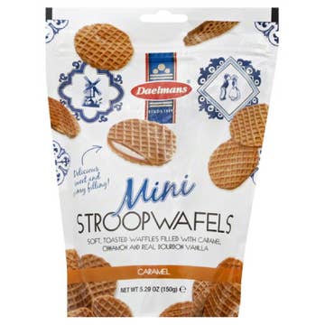 Daelmans Mini Stroopwafels are made in Holland by the Daelmans family bakery. These mini soft, toasted waffles, filled with gooey, mouthwatering caramel, are the perfect on-the-go treat. They are also wonderful paired with coffee, or as an ingredient in a range of desserts! The possibilities are endless!