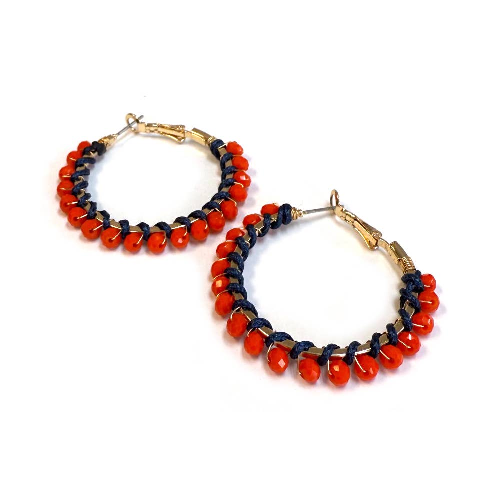 Blue And Orange Game Day Hoop Earrings | Game Day Jewelry | Team Spirit | Game Day Earrings | Gift For Team Mom Get ready to cheer on your team in style with our royal blue and orange game day hoop earrings! These earrings are perfect for showing off your team spirit while keeping your look chic and fashionable. Available in three different sizes—1", 1.5", and 1.75"—these hoops are designed to suit your personal style and comfort. Choose from three distinct styles, each featuring a unique blend of navy blue and white elements to match your favorite game day outfits. Our collection includes classic royal blue and orange beaded hoops, perfect for adding a pop of color and texture to your look. Whether you're tailgating, watching the game at home, or attending a sports event, these royal blue and orange sports hoops are the perfect accessory to complete your outfit.
