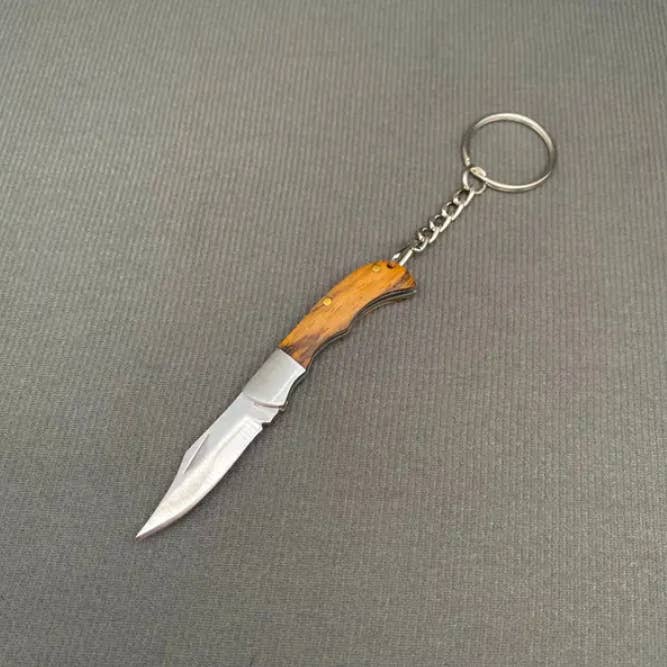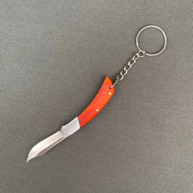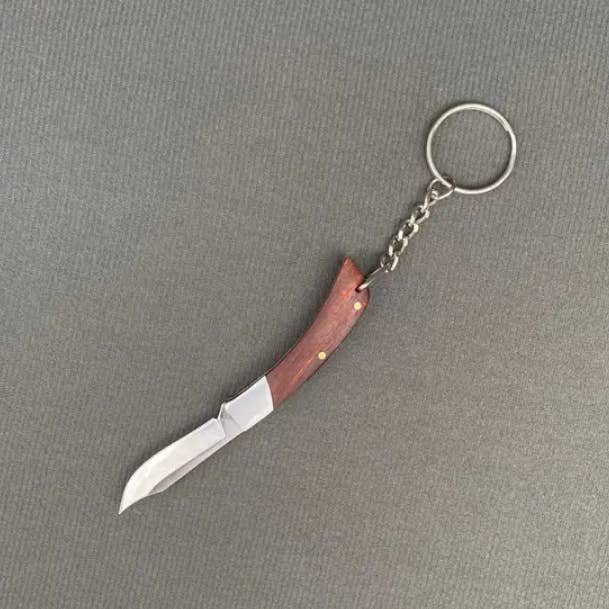 blade material: stainless steel handle material: wood knife cover: PU size: 90mm scope of application: box opening knife, accessory knife, keychain knife The knife can be used to cut things, and the chain can be hung on the keychain for easy carrying. It is exquisite and small, and is also suitable as a gift