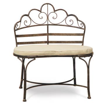 At a Glance Sunbrella Fabric Wrought Iron Multiple Colors All Weather 650 lbs Capacity Free Shipping The Provence Sunbrella Outdoor Bench from Sunset West features expertly crafted wrought iron construction with a woven basket weave frame and subtly brushed Century Pewter antique finish. This outdoor bench measures 74 inches long by 20 inches deep by 28.5 inches high with a 19-inch seat height. The bench features a 72-inch bench seat cushion that is 2 inches thick, making it excellent for garden lounging or pairing with outdoor dining tables. This outdoor bench weighs 45 pounds and features weather resistant, high-resiliency foam cushions covered in premium Sunbrella fabric. The wrought iron frame undergoes a 5-step finish process with powder coating for durability in outdoor environments. The well-dressed finials and commercial quality construction ensure long-lasting performance for both residential and commercial outdoor spaces. Comprehensive Specifications Overall Dimensions (LxDxH): 74" x 20" x 28.5" Seat Dimensions (LxDxH): 72" x 19" x 19" Upholstery Material: Premium Sunbrella Fabric