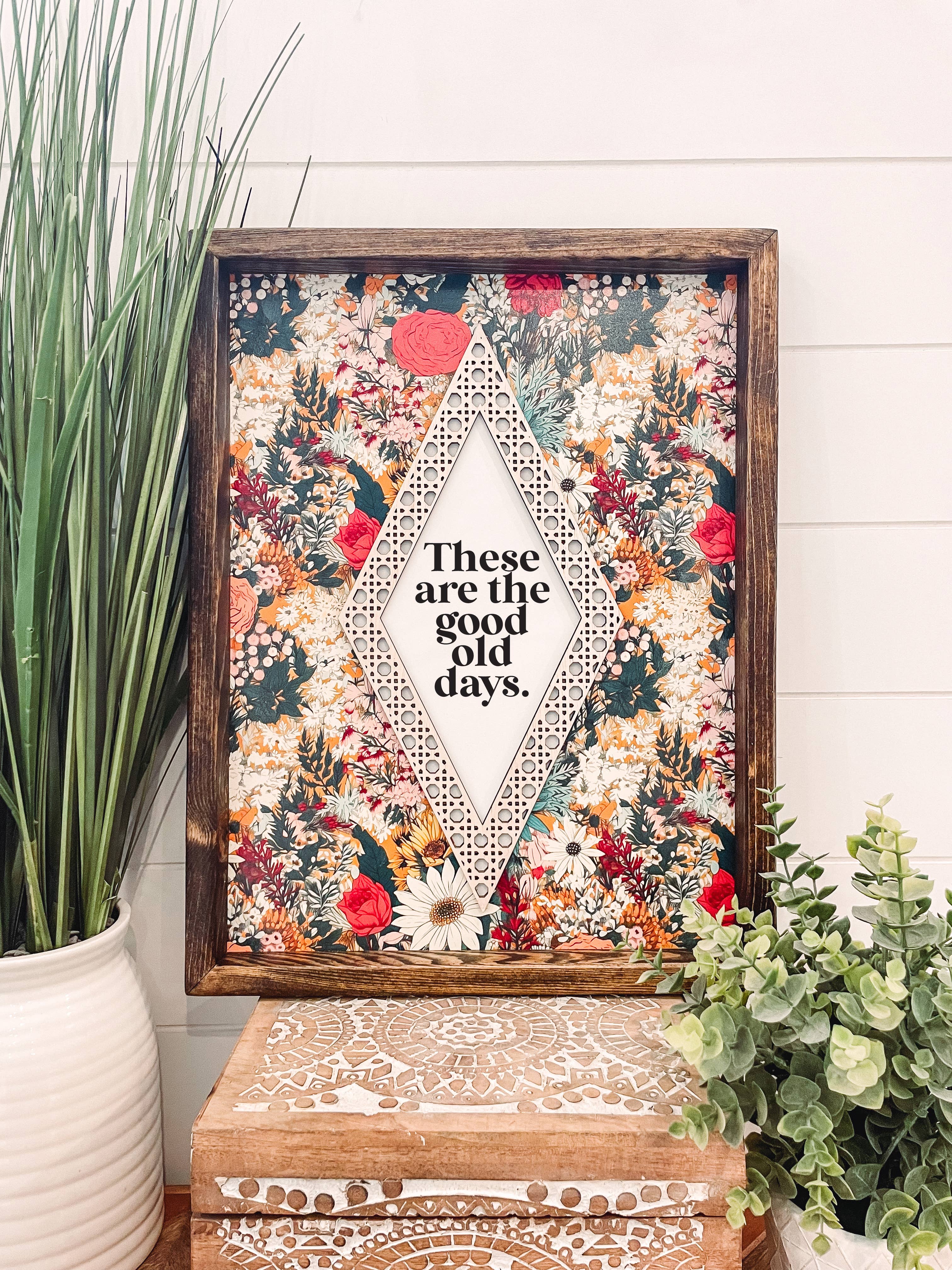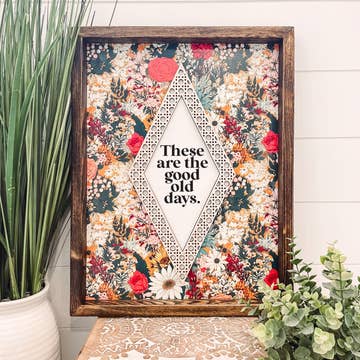 Garden of Flowers - this beautiful vintage inspired piece is cute small decor piece to sell in your boutique or flower shop. • Printed with high resolution archival giclee inks • Fine art cotton canvas mounted on wood • Solid hardwood frame in shown stain colors • Sustainable American oak or alder wood • Made in the USA in our Utah studio • MINI 6" tall x 6" wide x 1.25" deep w/ 1/4" thick frame • SMALL 11" tall x 11" wide x 1.25" deep w/ 1/4" thick frame • MEDIUM 15" tall x 15" wide x 1.5" deep w/ 3/4" thick frame • LARGE 20" tall x 20" wide x 1.5" deep w/ 3/4" thick frame • Signs may have +/-1" variations • All signs can stand on a shelf or table (Medium & Large can also hang on a wall) • Farmhouse style frames have small rustic imperfections that make them unique