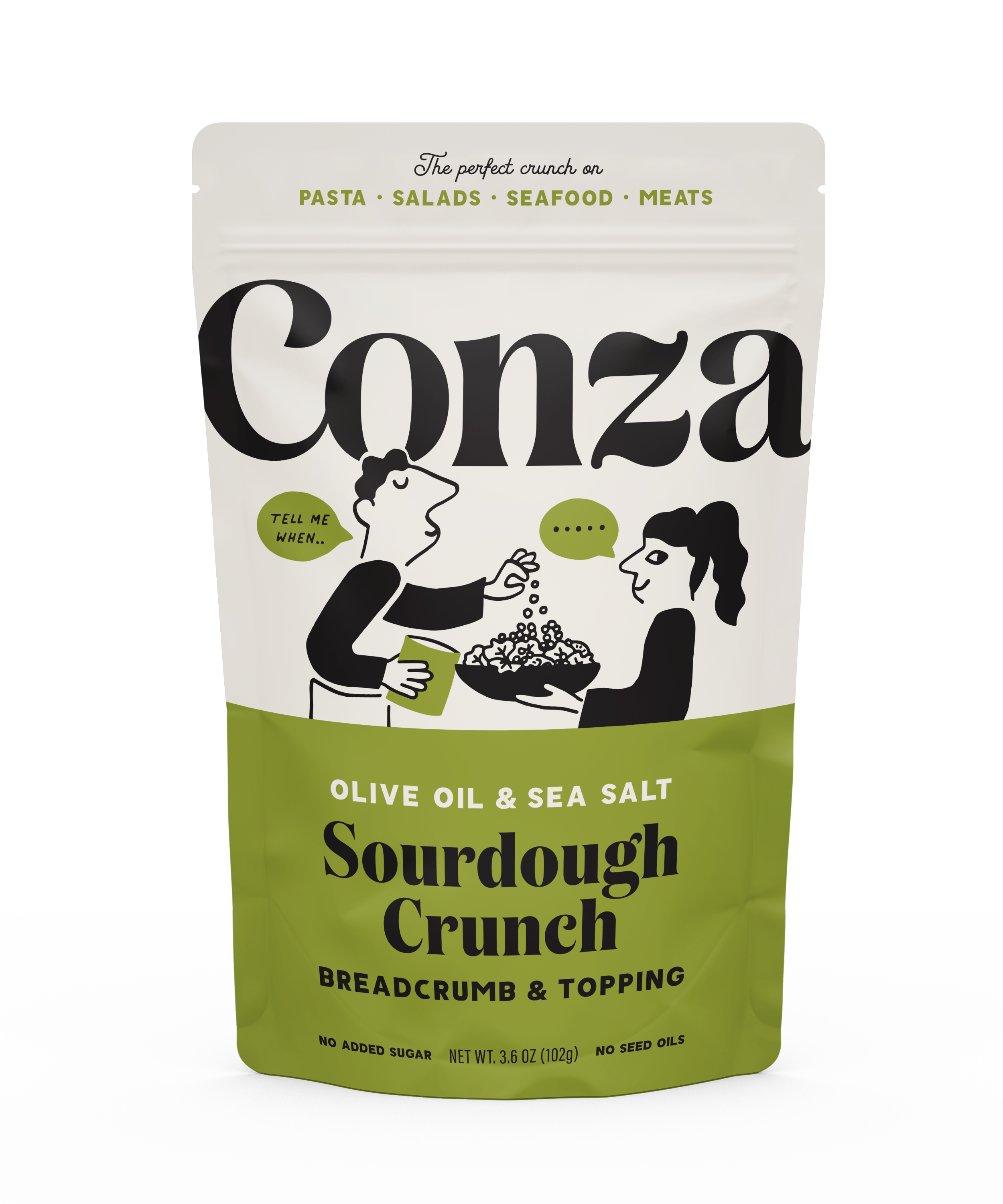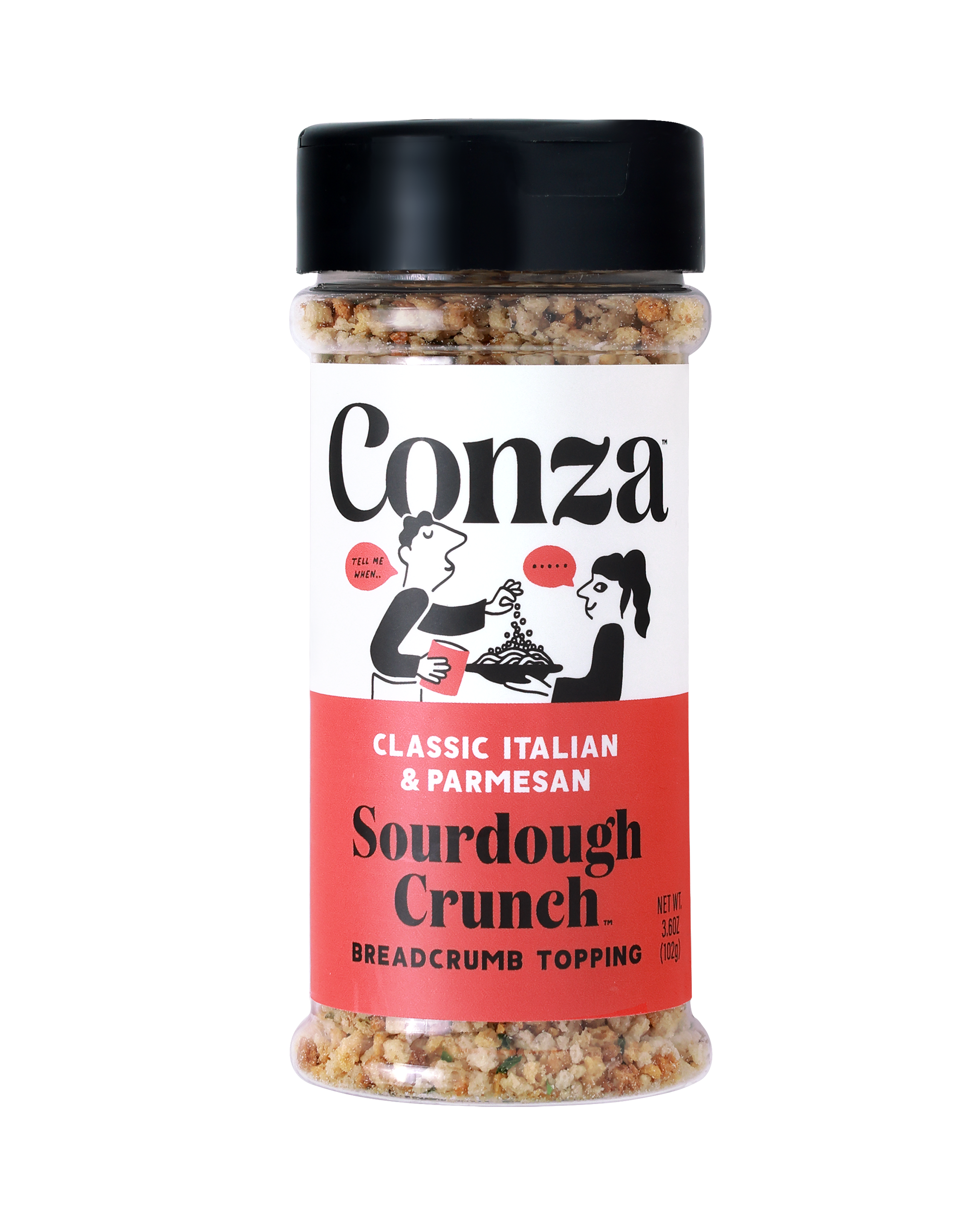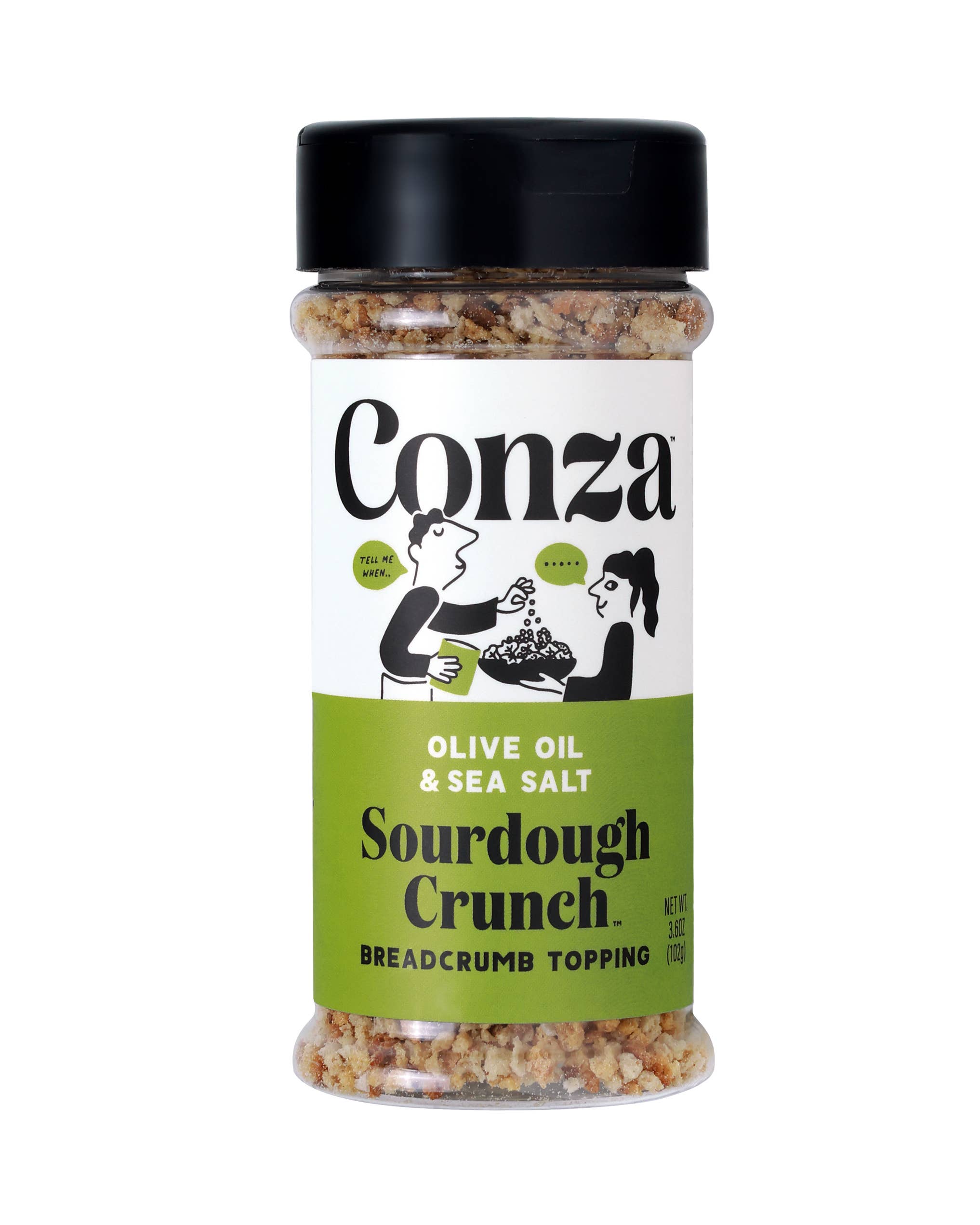 To deliver a fresh, toasty, crunch to any dish try Sourdough Crunch, a blend of real sourdough mix with Italian herbs and real parmesan. Why Conza? 1 100% natural sourdough starter 2 Healthier, non-toxic, no added sugar, preservatives, or seed oils 3 Real herbs and spices, Italian seasoning 4. Toasted with olive oil Topper: seafood, pasta, salads, eggs, pizza, meats, steak, veggies Most breadcrumbs are not made from real bread. So, we proudly bake real loaves of sourdough bread to achieve the crunchiest toastiest crumb. With ITALIAN HERB & PARMESAN, we bake real parmesan cheese into our sourdough and mix in the highest grade Italian herbs for an unmistakably Italian chef's kiss moment. #1 selling bread crumb / seasoning at hundreds of stores Conza is great for: Kids eating mac & cheese, Stocking stuffers, gift / gifts for foodies, people that obsess over olive oil, holiday / thanksgiving / fall /Christmas cooking / crouton / salad topper