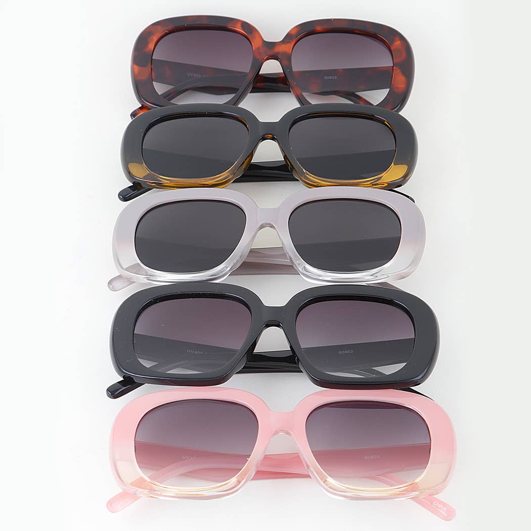 Square Shape Two-Toned Thin Frame Sunglasses - Unisex Sunglasses - Poly Carbonate Lenses - Size: 6" x 2.25" - 12 Assorted Colors - UV400 Protection against Ultraviolet Rays UVA&UVB Indulge in the epitome of eye protection and style with these high-quality sunglasses, meticulously crafted for the discerning fashion enthusiast. Engineered with advanced UV protection, they shield your eyes from harmful rays while elevating your look. The sleek design seamlessly blends fashion and functionality, ensuring you make a bold statement wherever you go. The premium materials guarantee durability and comfort, making them an essential accessory for sunny days. Embrace timeless elegance with these sunglasses that not only prioritize your eye health but also exude unparalleled style, a perfect fusion of sophistication, and superior sun defense.