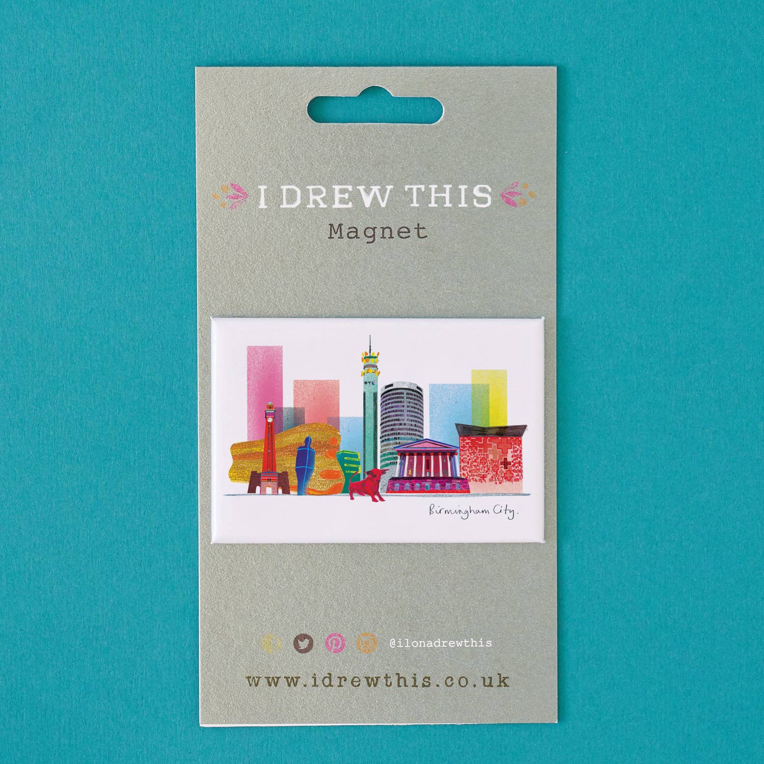 The Birmingham Skyline has never looked so colourful as shown here in Ilona's illustration of the city. This beautiful I Drew This Birmingham Skyline card is part of our award winning Landmarks range, featuring cityscapes and landmarks from Brighton, Sussex, London and across England, Scotland, Wales and Ireland. This stunning card has been printed in the UK on quality 350gsm board and measuring 178mm x 130mm. Our cards come with a recycled Kraft envelope. Blank inside for your own message.